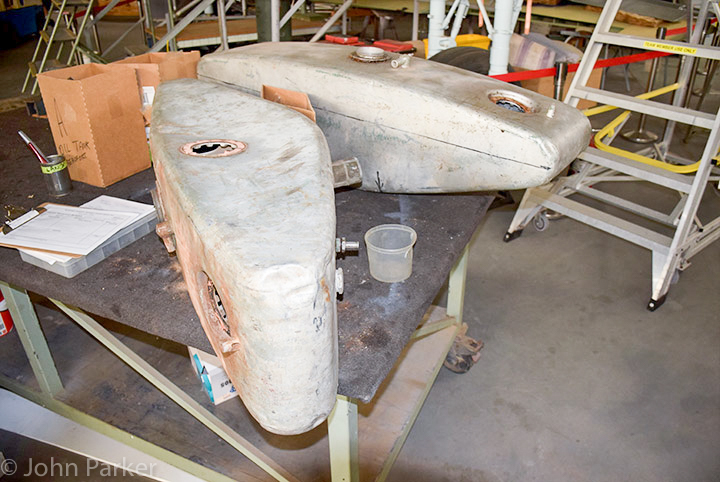 Both of the Beaufort’s ailerons are complete and ready for fitting once the outer wing panels are in place. Restoration has commenced on both oil tanks, which also will be ready for fitting soon. In addition, suitable original fuel tank mounting straps have been located and are about to be refurbished.