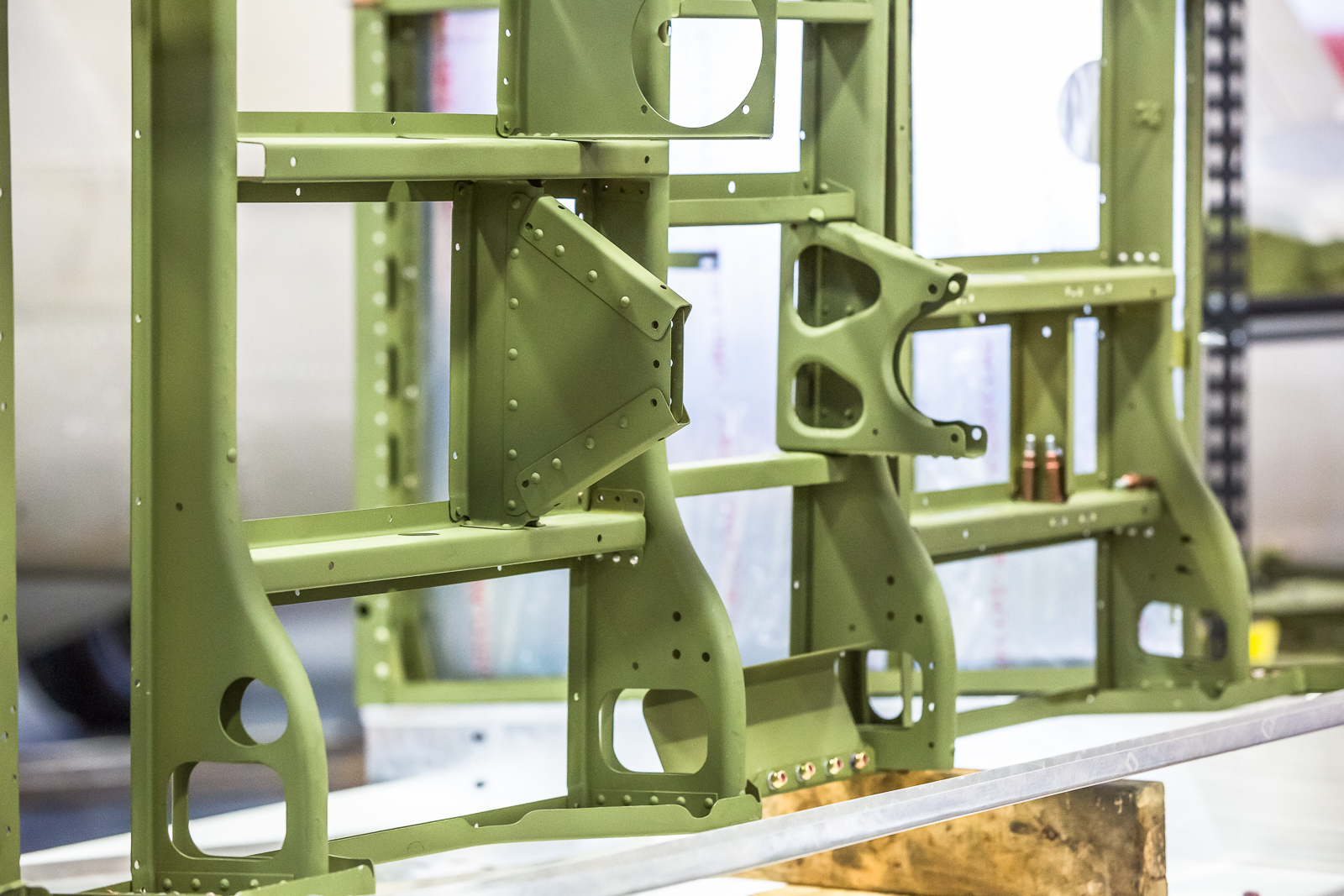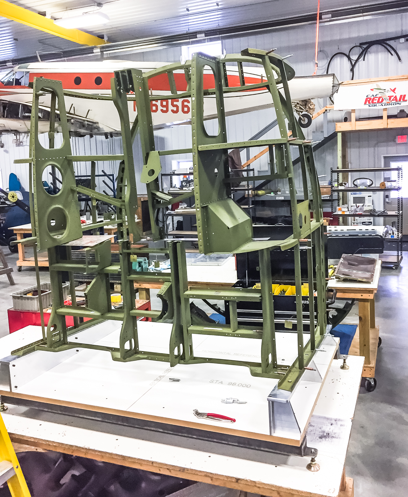 Last time I wrote about the type’s history and showed how the project arrived at AirCorps Aviation. At the time of that report, restoration work was in a very early stage. As is true of most restorations, early work consists mainly of parts fabrication and preparation to begin the actual assembly. Despite many hours of parts production, until that phase ends, there isn’t a great deal of visually clear progress. Parts fabrication will continue, but now there are enough done to begin some assembly work. That generated the visual progress for this update.
