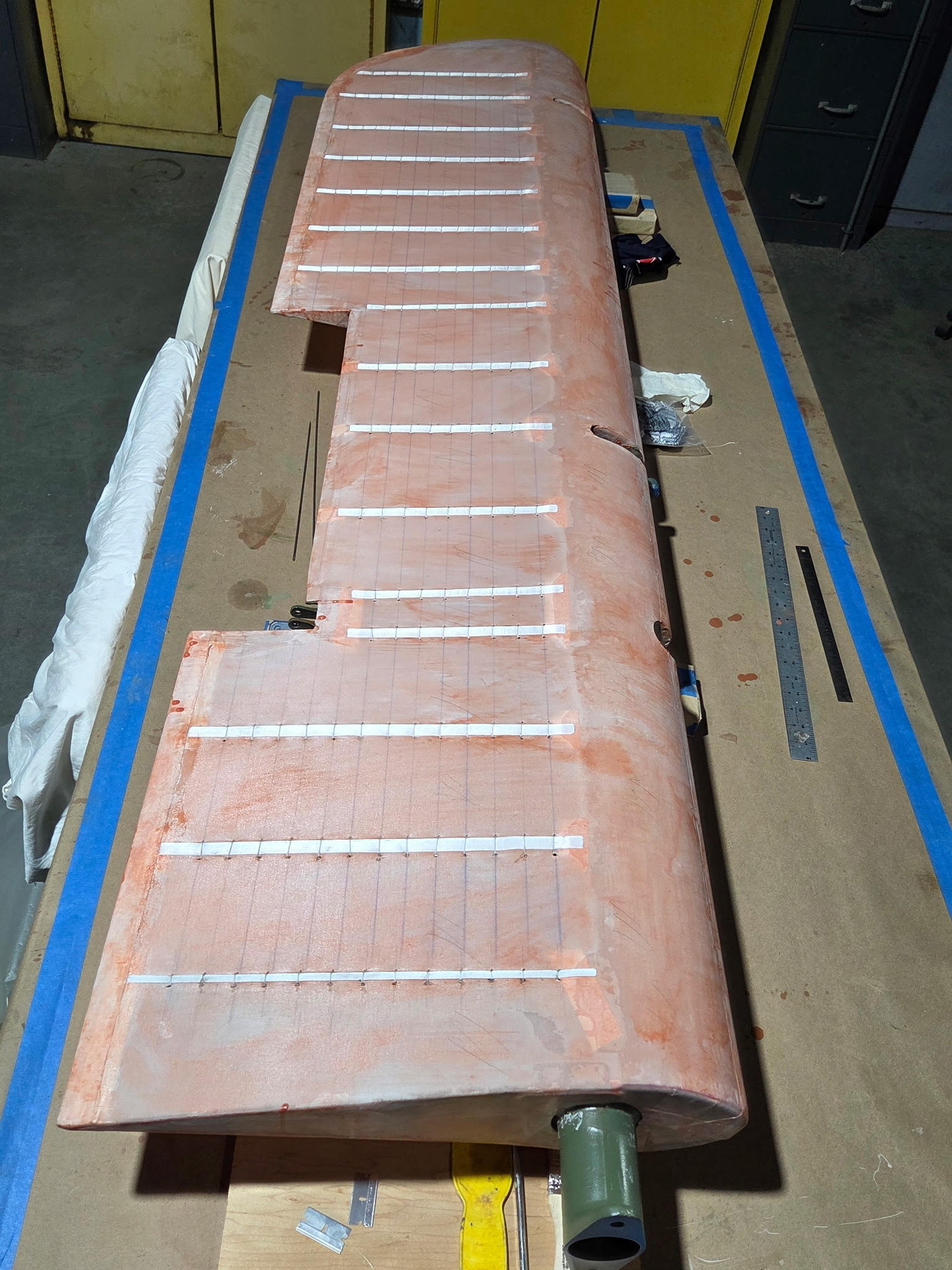 Significant progress is also being made in the cockpit. McMahon is leading the overhaul of all wiring, including replacing and repairing cable runs, overhauling existing wiring, and installing a comprehensive new avionics package. The upgrades include dual AV-30 units, a Garmin VHF radio, an in-panel GPS navigator with WAAS capability, ADS-B In for traffic, and LED lighting throughout. All placards, switch panels, and circuit breakers have been refurbished to look new, and the instrument panel is currently being finalized. The windscreen frame requires one final repair before the canopy and windscreen can be installed.