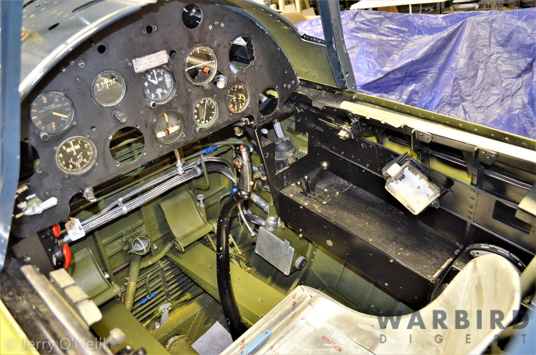 There are some final adjustments and finishing remaining to complete the newly fabricated pilots seat, which was one of the other items removed back in 1971.