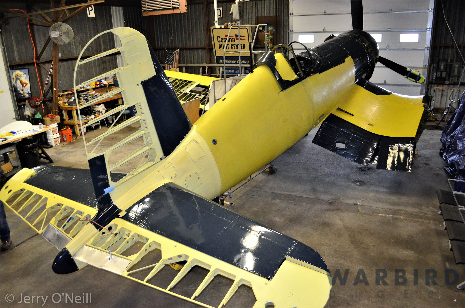I visited the Connecticut Air and Space Center’s FG-1D restoration yesterday, December 15, 2018, and spoke with Mark Corvino, who is head of the project.