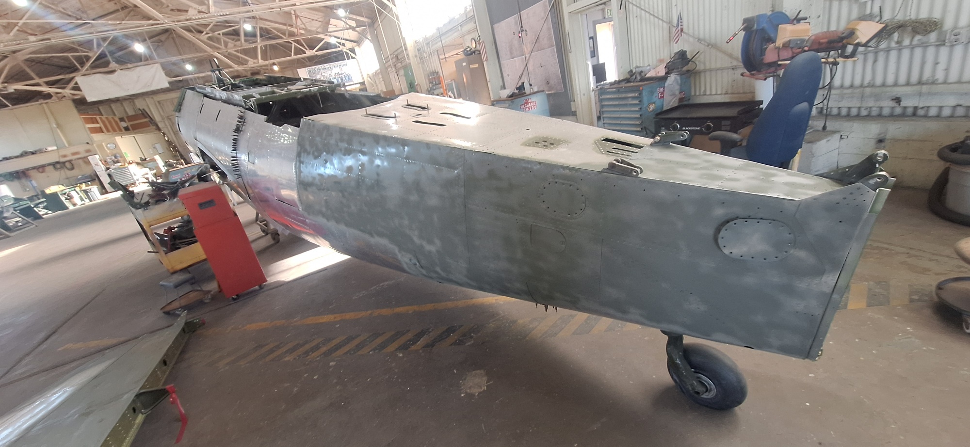 BuNo 76805, meanwhile, would see its restoration begin under the guidance of warbird restorer Mike Rawson before it was sold off to the National Museum of the United States Air Force to be restored for display in its stock A-25A Shrike configuration. Unfortunately, this restoration was never completed, as the NMUSAF found itself busy with the restoration of other aircraft, and the Shrike, after being offered for exchange, was sent to Pensacola along with components from two other airframes to serve as a source of spare parts for the restoration of SB2C-4 19866. Yet even with the arrival of SB2C-1A 76805, no restoration work began at Pensacola.