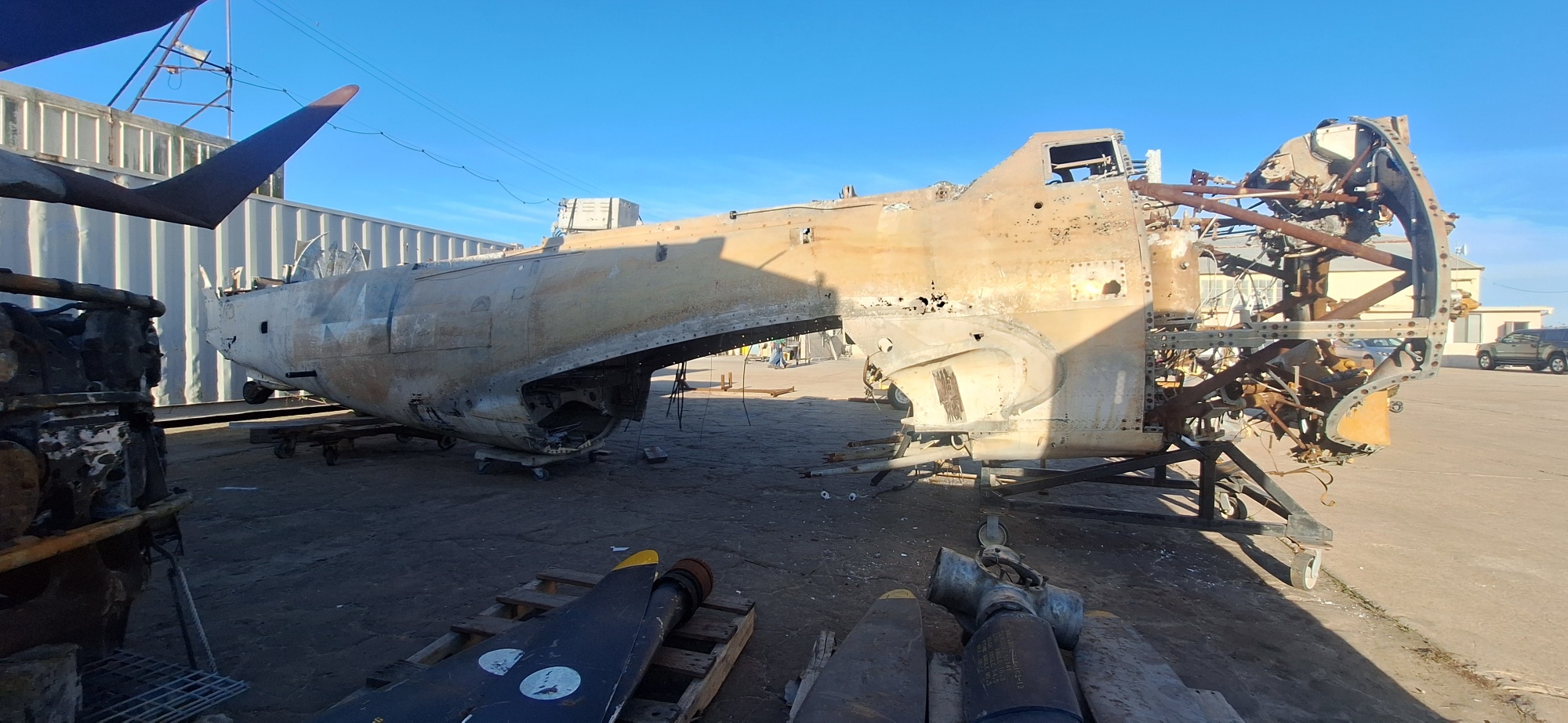 The end of 2024, however, would see a big turn of events for the two Helldivers, as it was decided, shortly after the National Naval Aviation Museum transferred a Vought F4U-4 Corsair to the USS Midway Museum (see our article HERE) that the NNAM would also transfer both of their Helldivers to the USS Midway Museum, where SB2C-4 BuNo 19866 will be restored with parts from A-25A 42-80449/SB2C-1A BuNo 76805 and be placed on display aboard the Midway while remaining on loan from the NNAM. Though BuNo 19866 will be displayed aboard the Midway, BuNo 76805 will still be subject to the NNAM’s discretion to either bring back to Pensacola or send to another museum affiliated with the NNAM. As of writing, the two Helldivers have been brought to Hangar 805, the Midway’s restoration hangar inside NAS North Island. Midway museum curator David Hanson commented about the arrival of the Helldivers, saying, “After the cross-country trip from Pensacola, the two airframes arrived in San Diego in late 2024, and were delivered to the Midway Museum’s aircraft restoration hangar across the bay at Naval Air Station North Island. There a small team of mostly volunteers will restore the pieces and eventually produce a display-worthy Curtiss SB2C for the Midway’s hangar deck. The process will no doubt take many years, but we look forward to hosting this rare aircraft onboard, especially as it was the first bomber to deploy on the Midway in the ship’s first year of service (1945).”