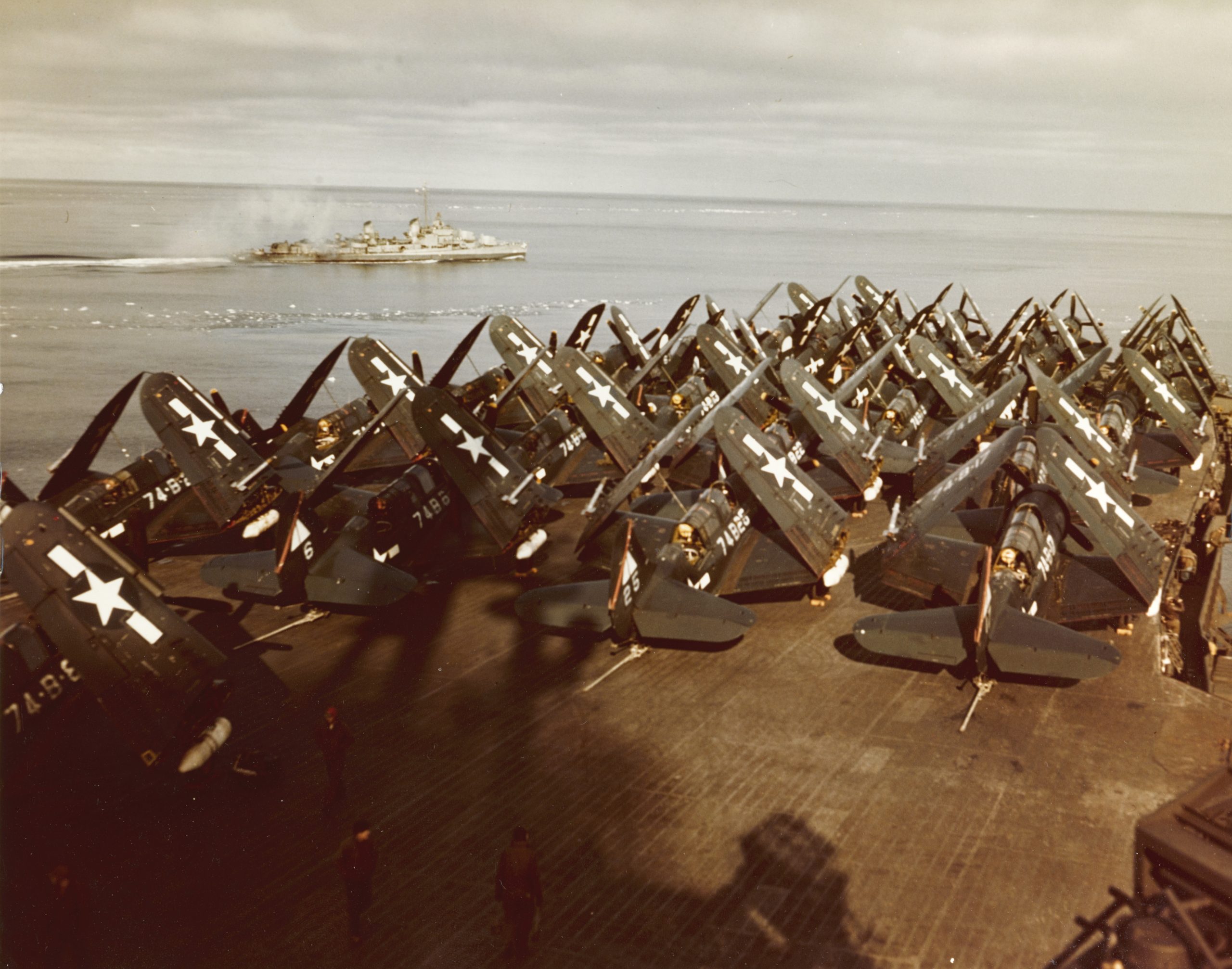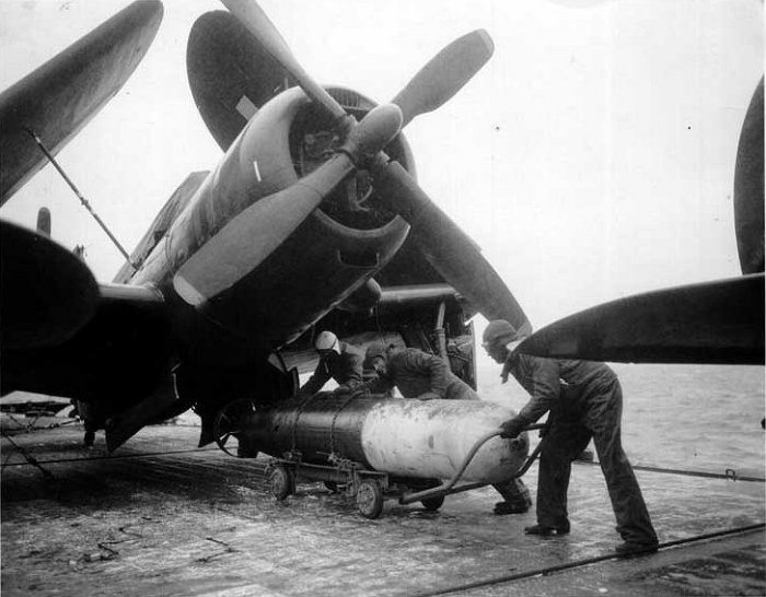 As Hanson alluded to, the Curtiss SB2C Helldiver played a role in the first deployment of the USS Midway. When the Midway was commissioned on September 10, 1945, just eight days after the official surrender of Japan, the first aircraft to fly from her decks were Curtiss SB2C Helldivers, General Motors-built TBM Avengers, and Vought F4U Corsairs as part of Carrier Air Group 74, with the Helldivers aboard Midway being assigned to Bombing Squadron 74 (VB-74), nicknamed the “Bomb-a-Toms”, and to Torpedo Squadron 74 (VT-74), nciknamed the “Beasts”.