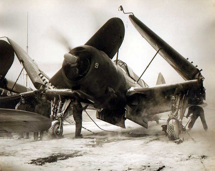 These Helldivers also operated from the Midway during Operation Frostbite, which saw the Midway lead a task force from Hampton Roads, VA, to the Davis Strait between Labrador and Greenland, where the deckhands and flight crews operated in Arctic conditions to demonstrate how US carriers could perform air operations in the event of the outbreak of a war with the Soviet Union in the Arctic. The carrier also served as a test bed for new aircraft types during Operation Frostbite, such as the Grumman F8F Bearcat, Ryan FR-1 Fireball mixed-propulsion fighter, and Sikorsky HNS-1 helicopter. Following Operation Frostbite, the Midway’s complement of SB2C Helldivers remained until 1947, when the US Navy’s remaining Curtiss SB2Cs were relegated to Naval Air Reserve units, and the role of the dive/attack bomber aboard carriers such as the USS Midway was filled in by the Douglas AD Skyraider (later redesignated the A-1).