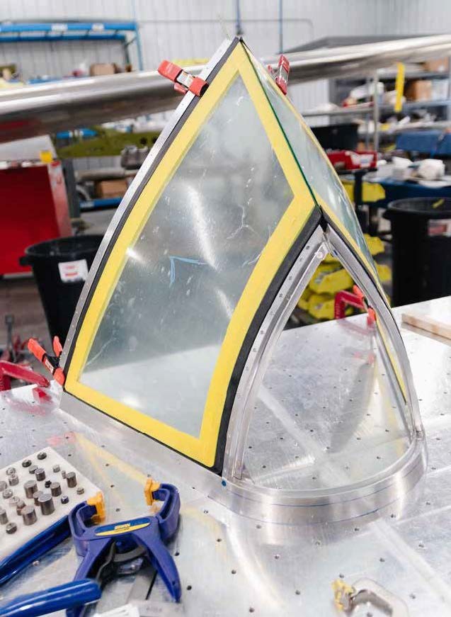 Work on preparing the cockpit enclosure for installation resumed, with progress on the windshield and sliding enclosure frames occurring this month.