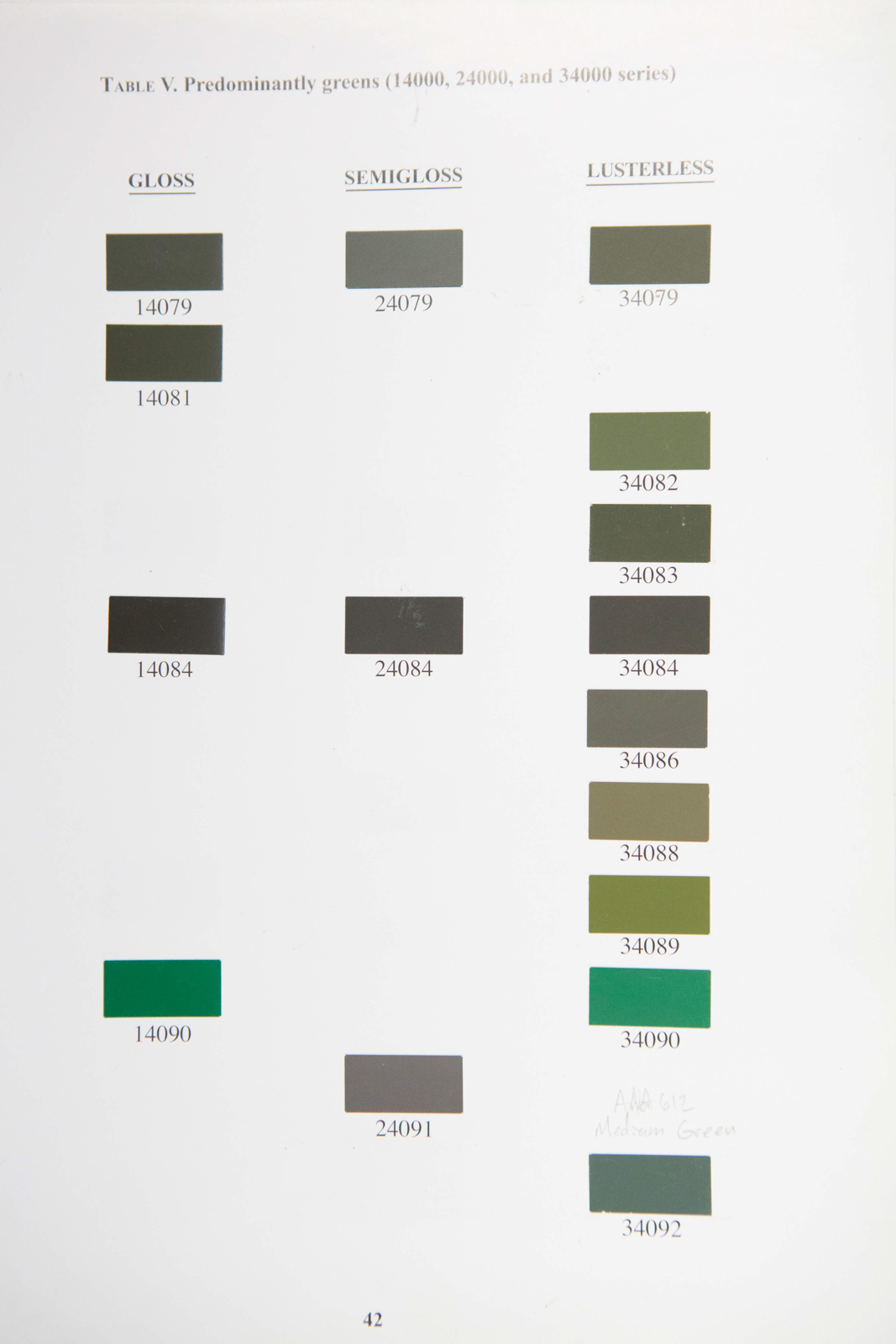 The following photos show the color. Note that different lighting angles and intensity make the color appear different in the various photos but the dark green is all the same custom mix to duplicate the original paint from 42-27609.