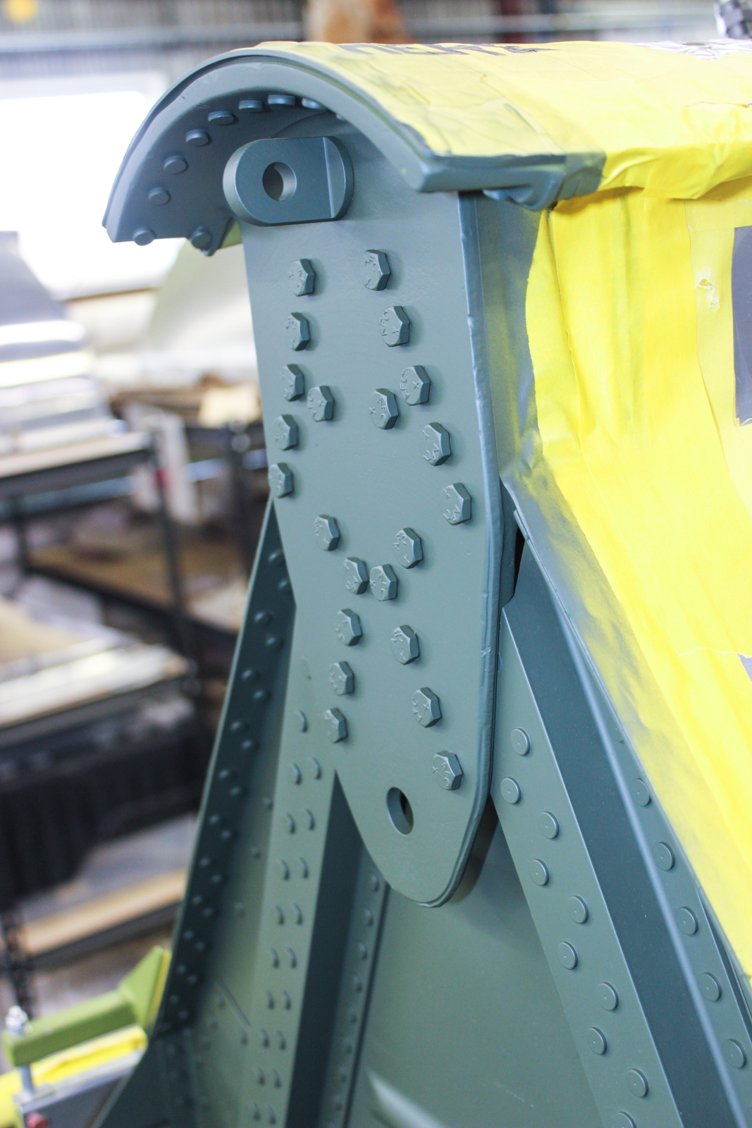 Along those edges is paint that was covered by overlapping aluminum for 73 years. That green paint held its correct color because it wasn’t exposed to sunlight or weathering.