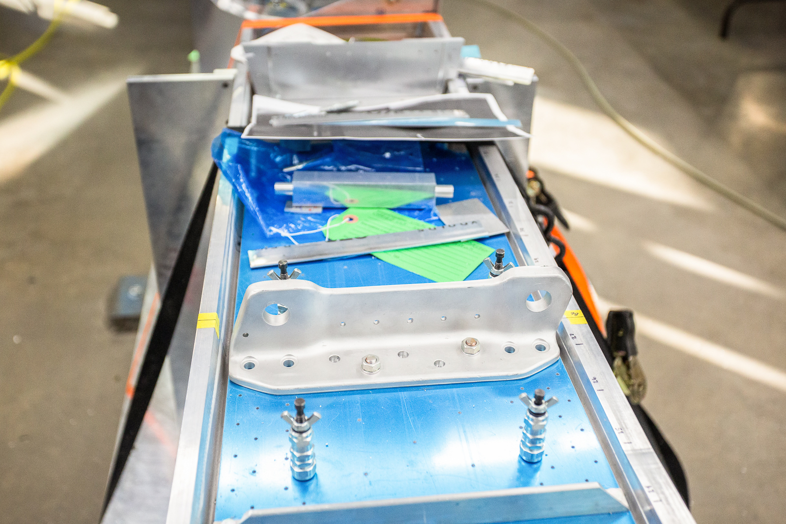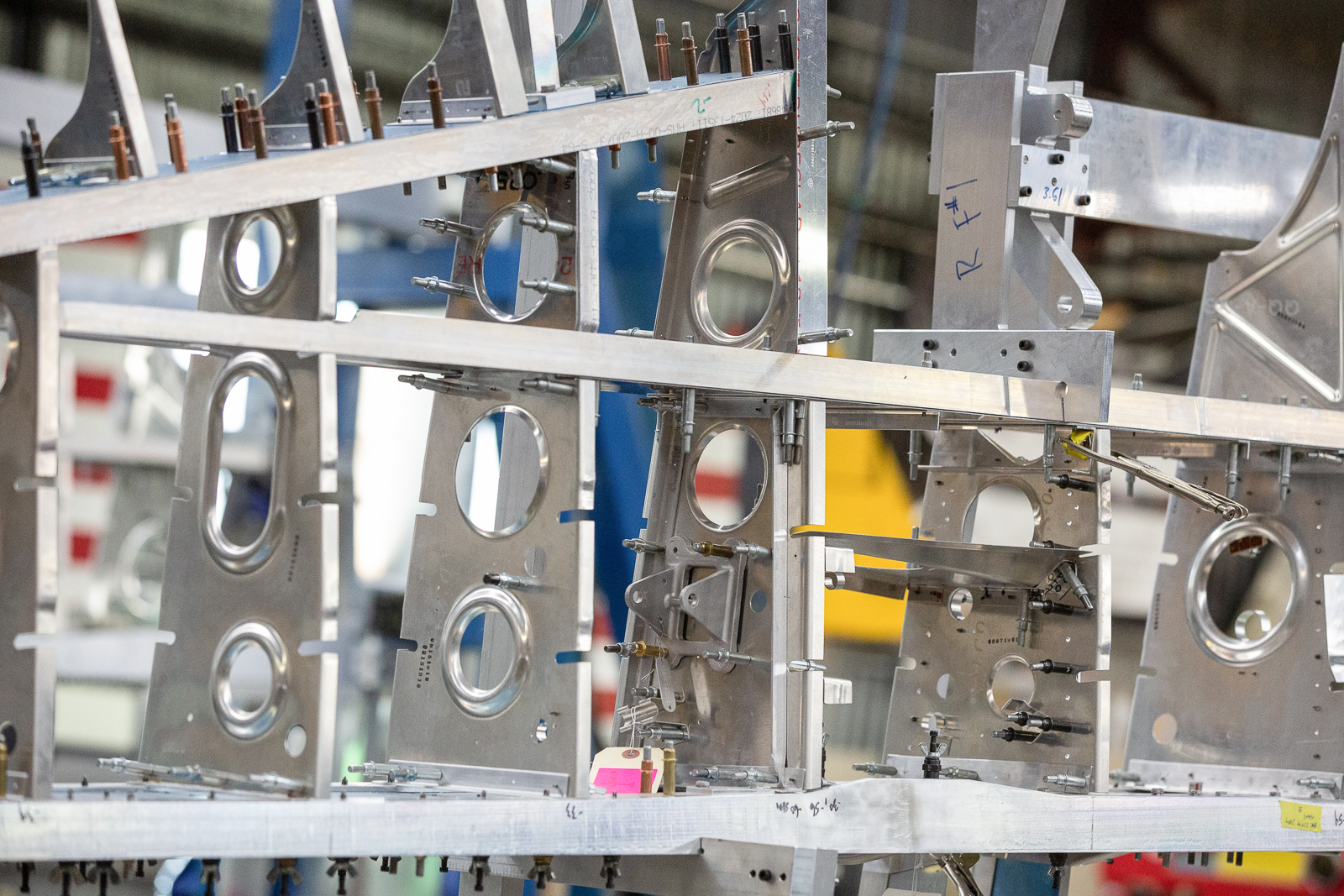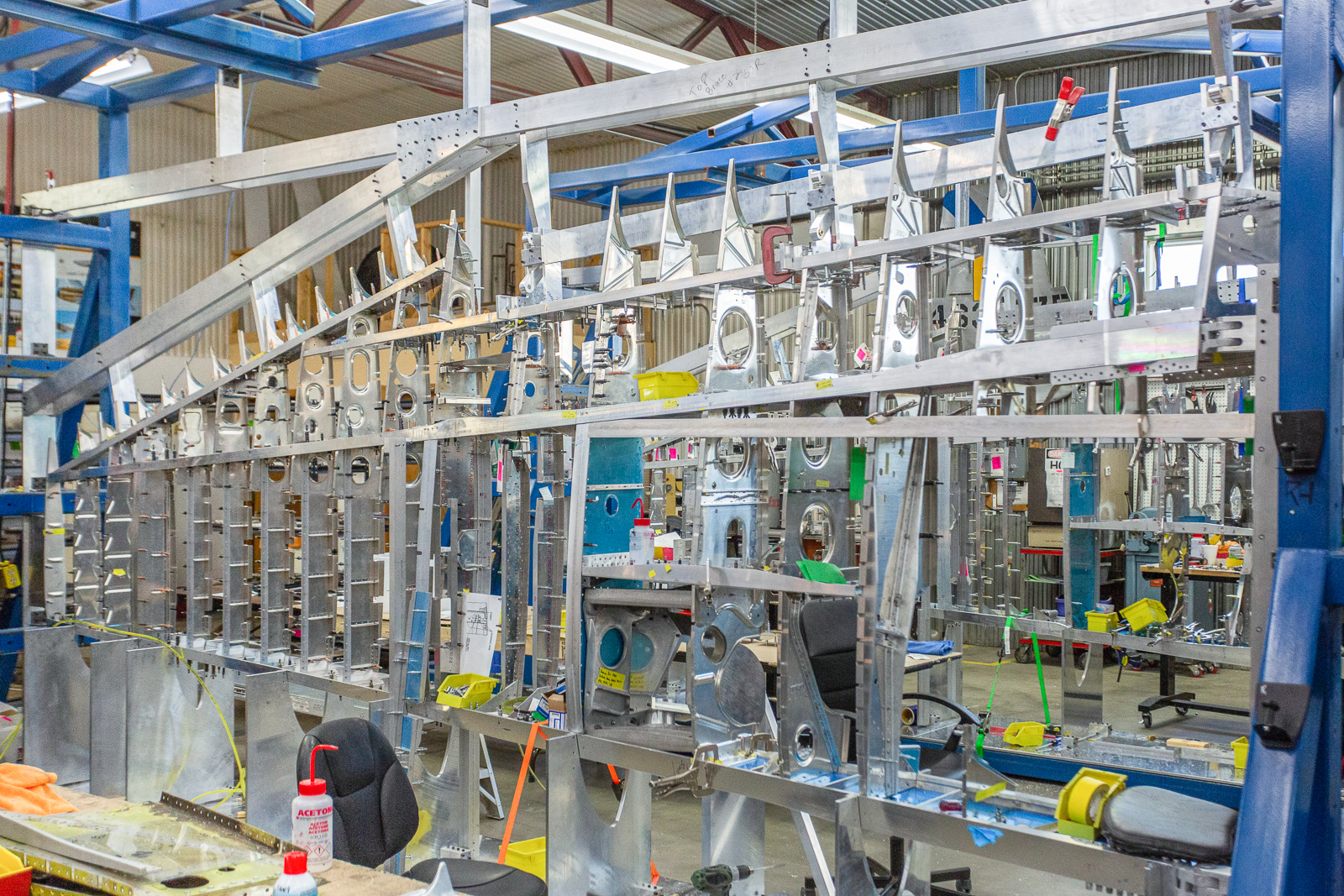 The fixtures hold the wing perfectly aligned as more and more components go into place between the spars. It was fun to watch the progression as the open spaces between the spars were filled in over the course of the month.