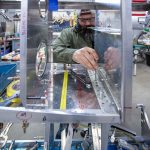 The wings and landing gear received the most attention this month. Because the wing is a semi elliptical planform, each rib is unique and has to be fitted individually. Rob and Randy have been assembling the wing components as the guys in the fab shop produce the parts. Lance has been working on the various functional mechanisms that cause the landing gear to shorten as they are retracted.