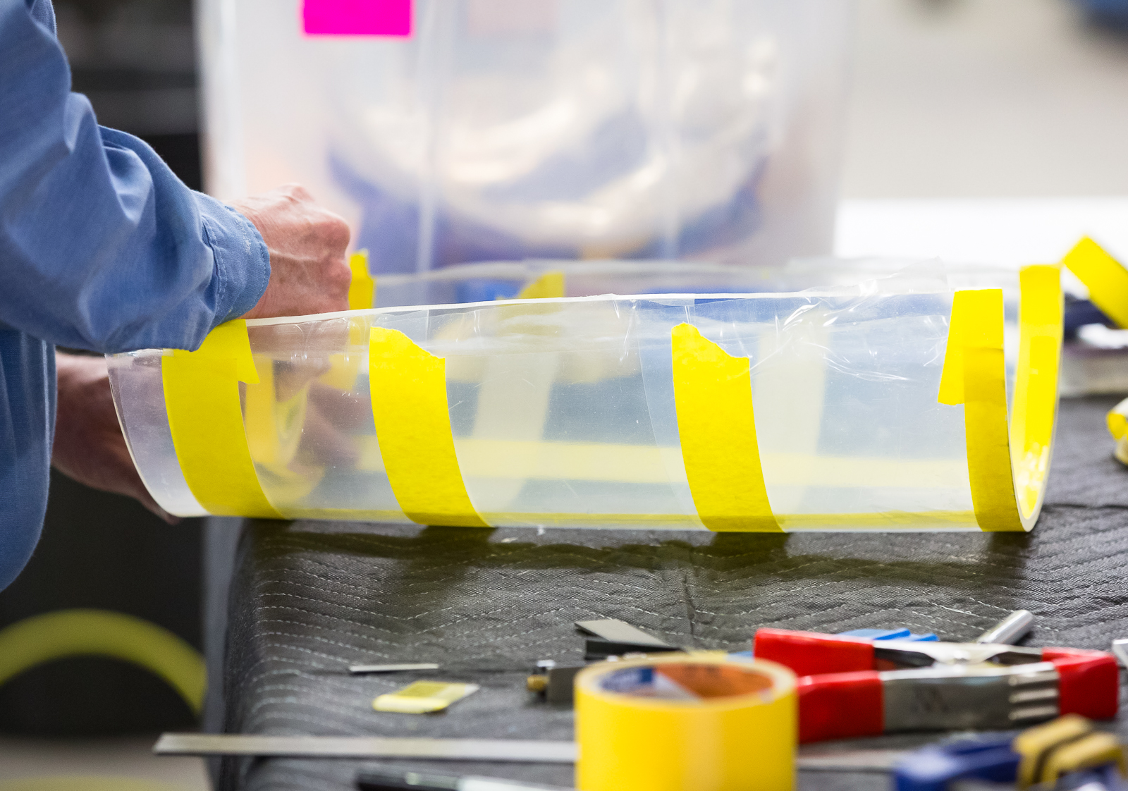The fixture will keep everything perfectly aligned as Lance repairs the one tube that needs work. (photo by John LaTourelle)