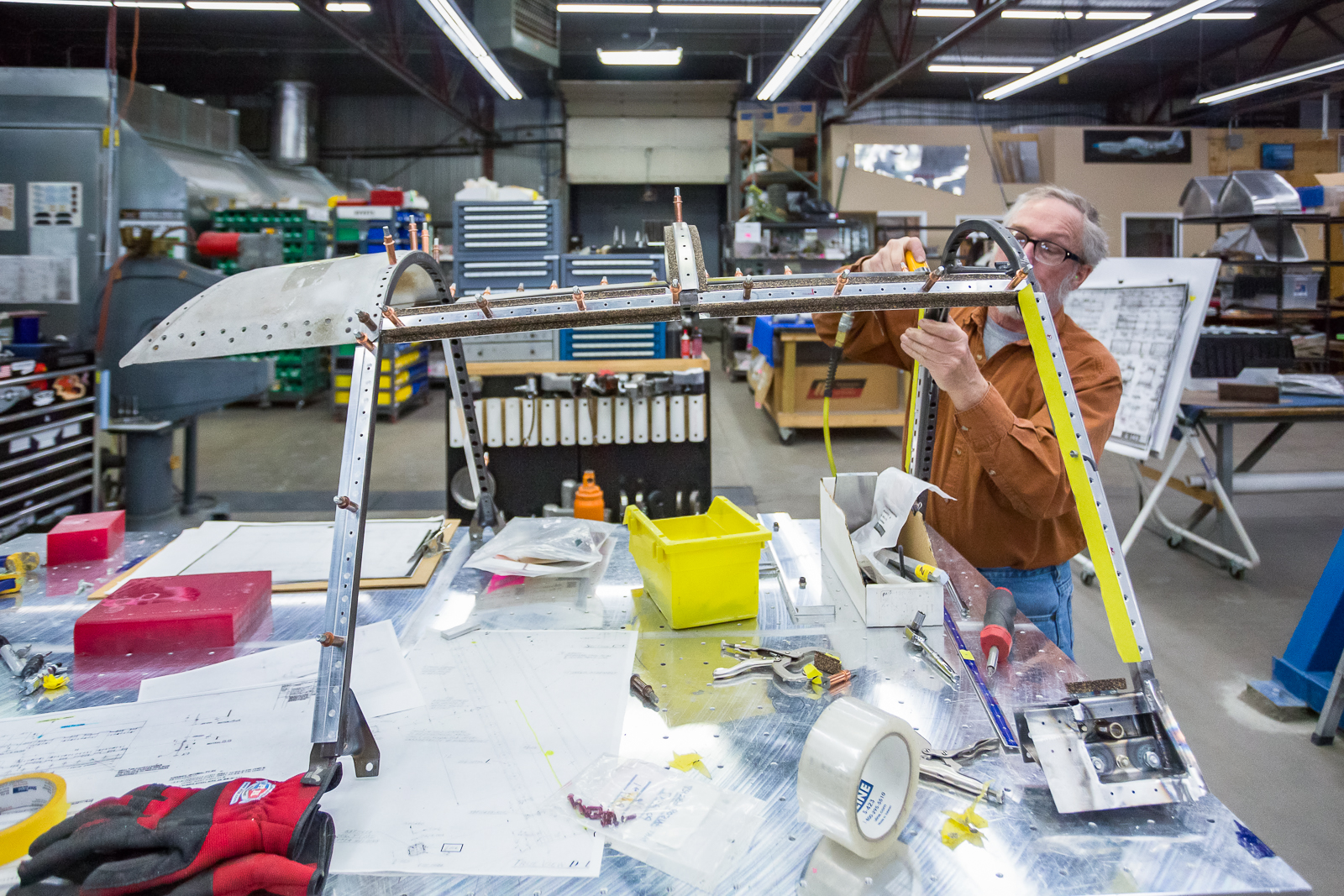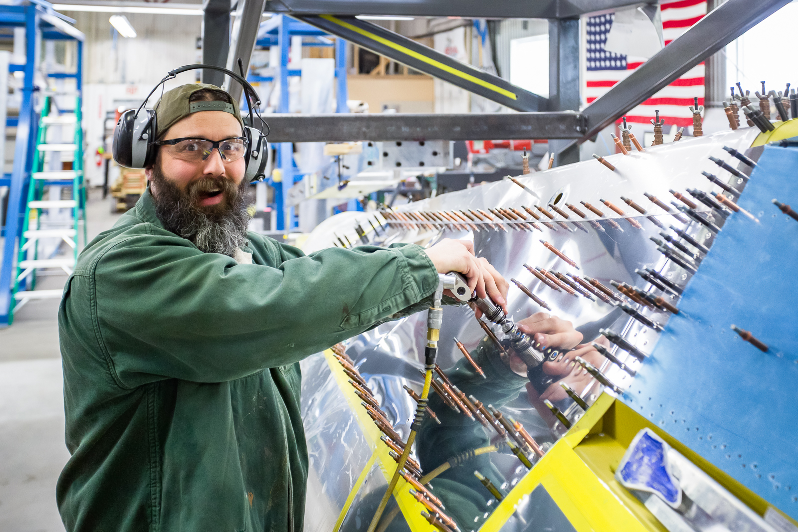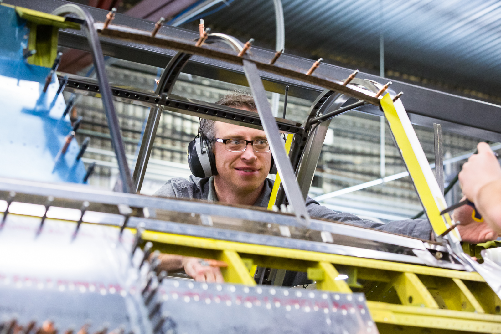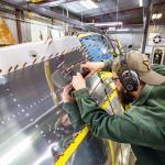 The Thunderbolt’s interior structure also adds complications to the job. With so many passages for ducting and reinforcement plates, there are numerous very tight spaces for bucking rivets. These are created by inner and outer walled off areas, even though overall, the inside of the fuselage is cavernous.