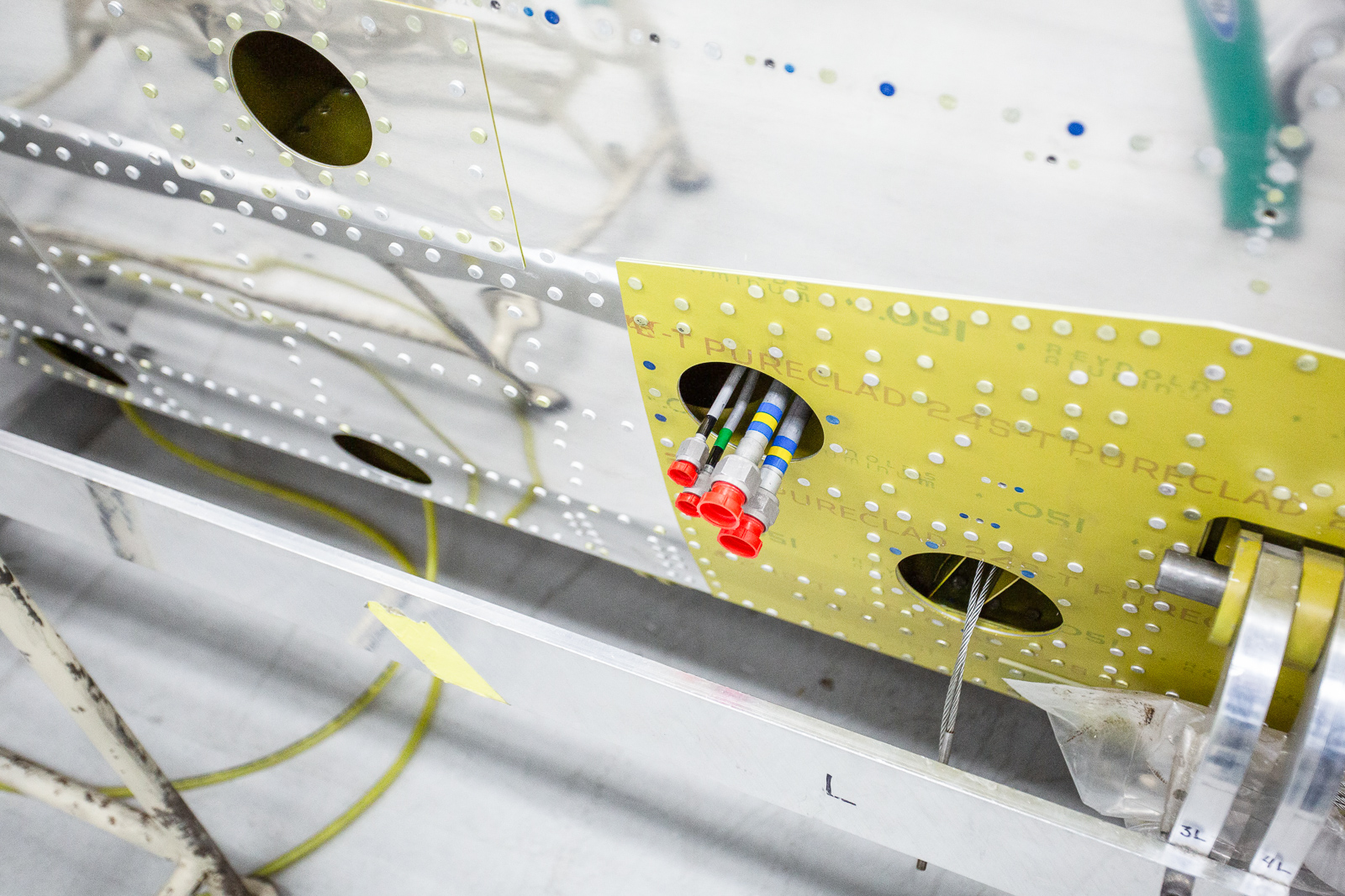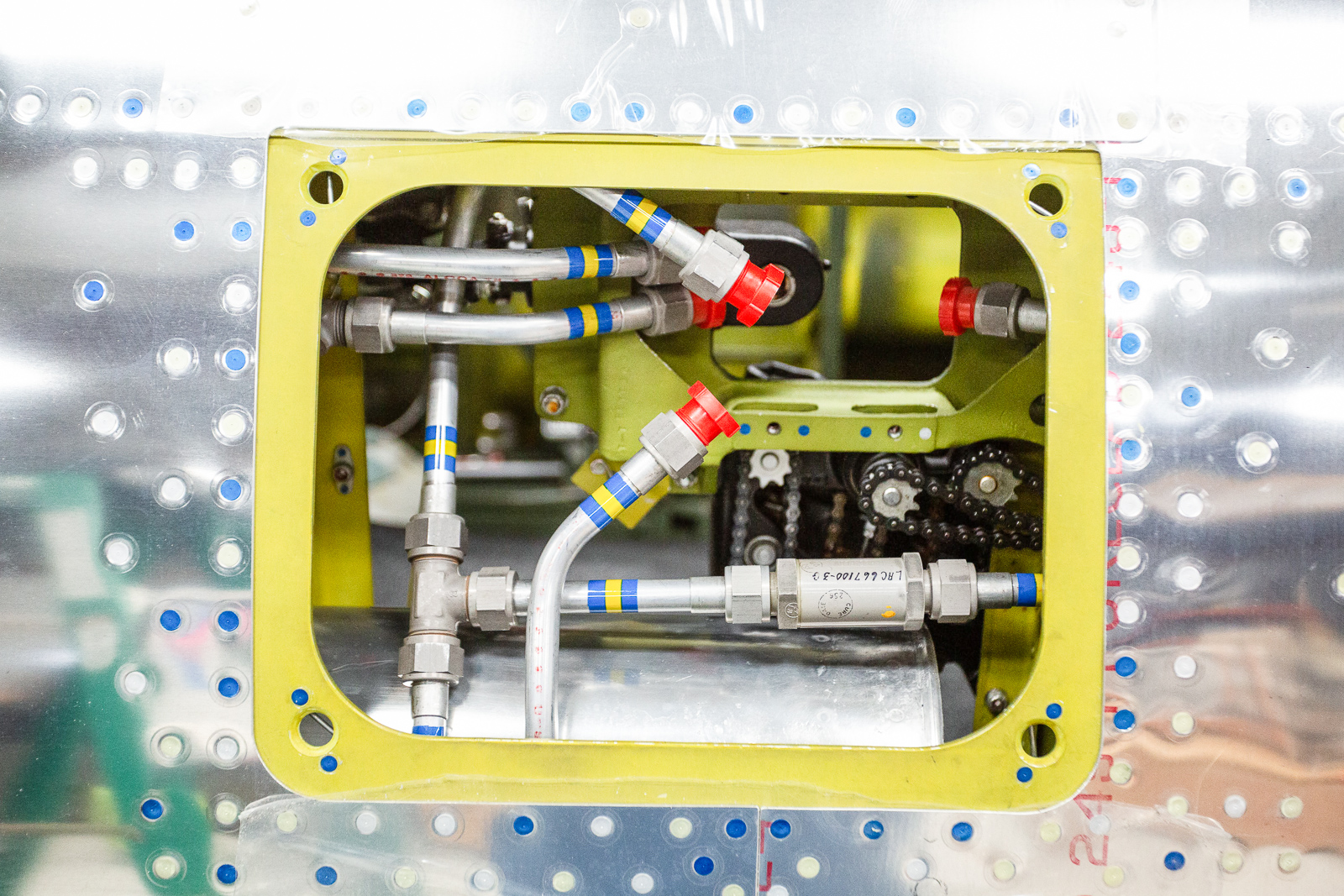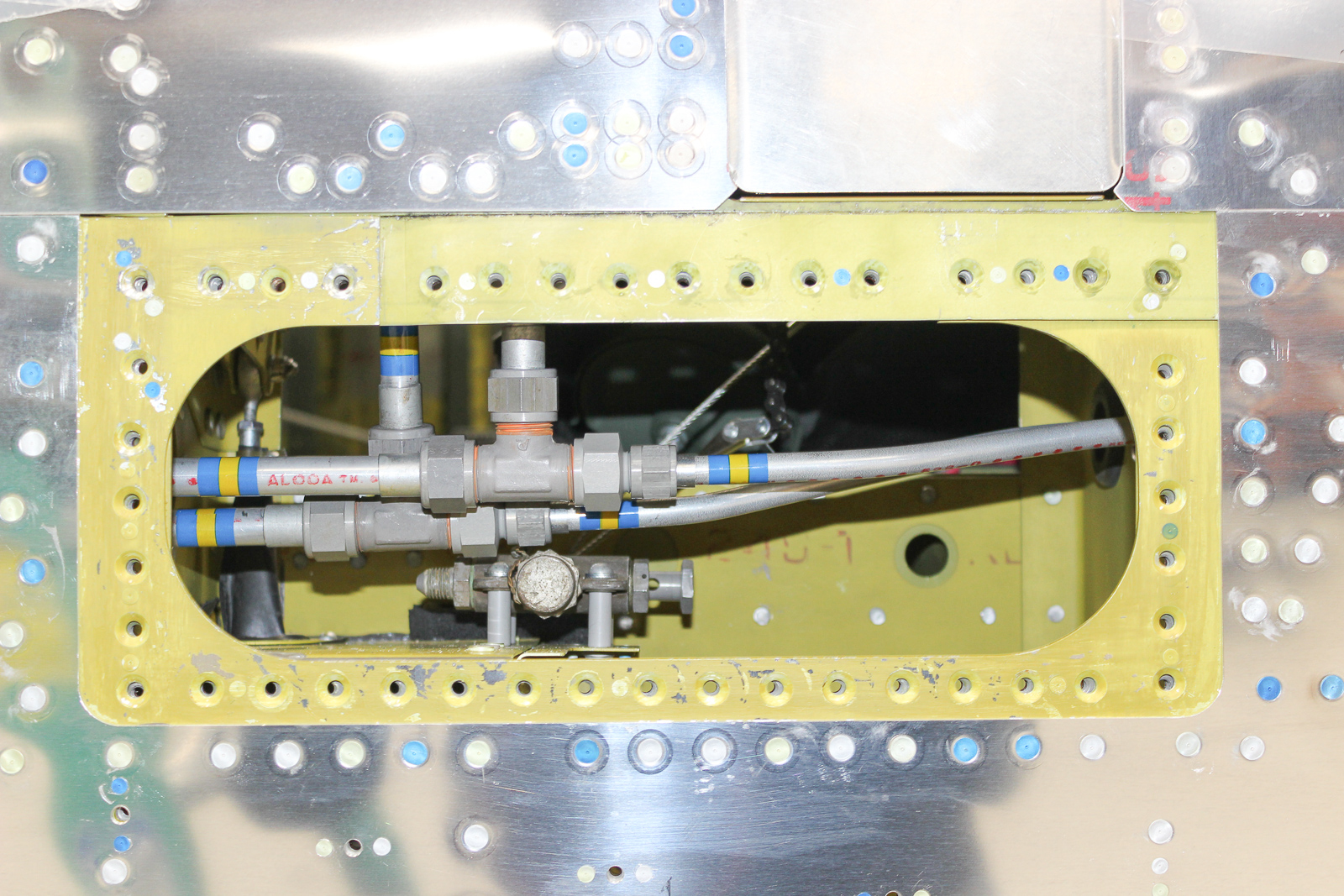 In a look through one of the fuselage access panels, we can see the hydraulic lines that have been installed. (photo via Chuck Cravens)