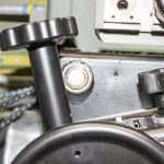 The three trim controls shown in close up, the tall one is the rudder trim, the knob to the right is the aileron trim, and the wheel at the bottom controls elevator trim. (photo by Chuck Cravens)