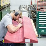 Jacob sands a form for the inner wing trailing edge skin to remove any tooling marks. (photo via Chuck Cravens)