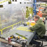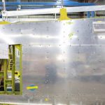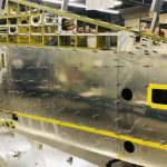 The aluminum extrusions that form the edge of the wheel well openings have been installed. (image via AirCorps Aviation)