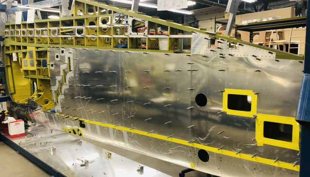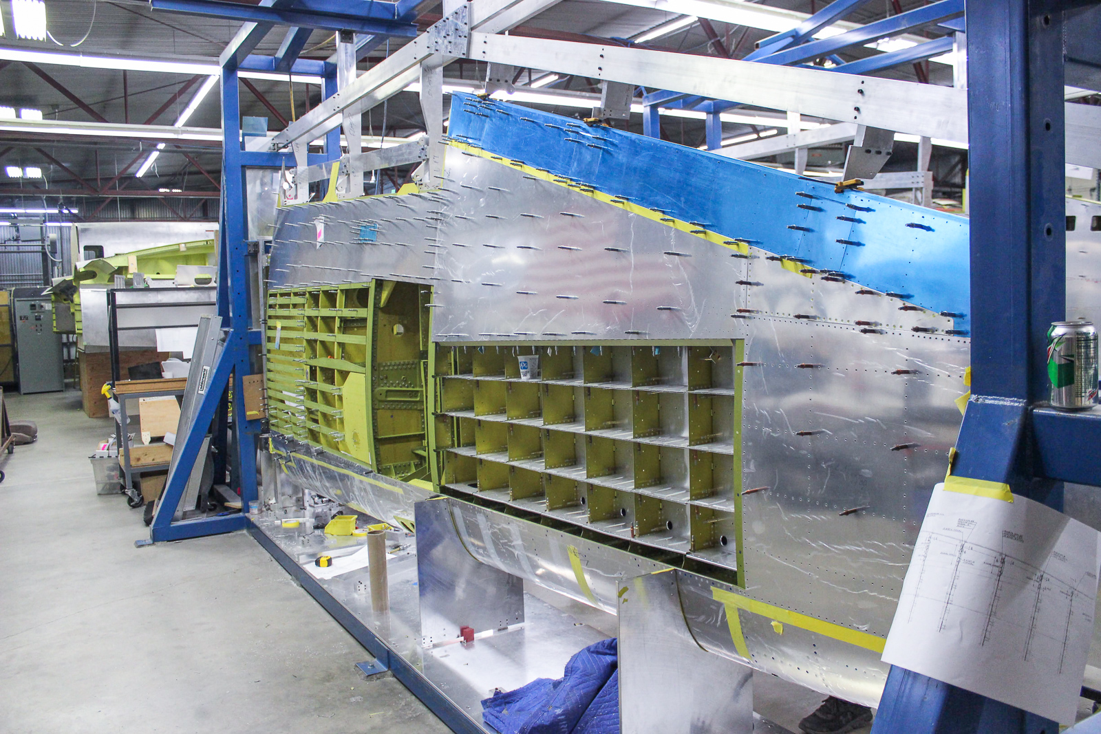 More skin has been fitted to the underside of the right wing. (image via AirCorps Aviation)