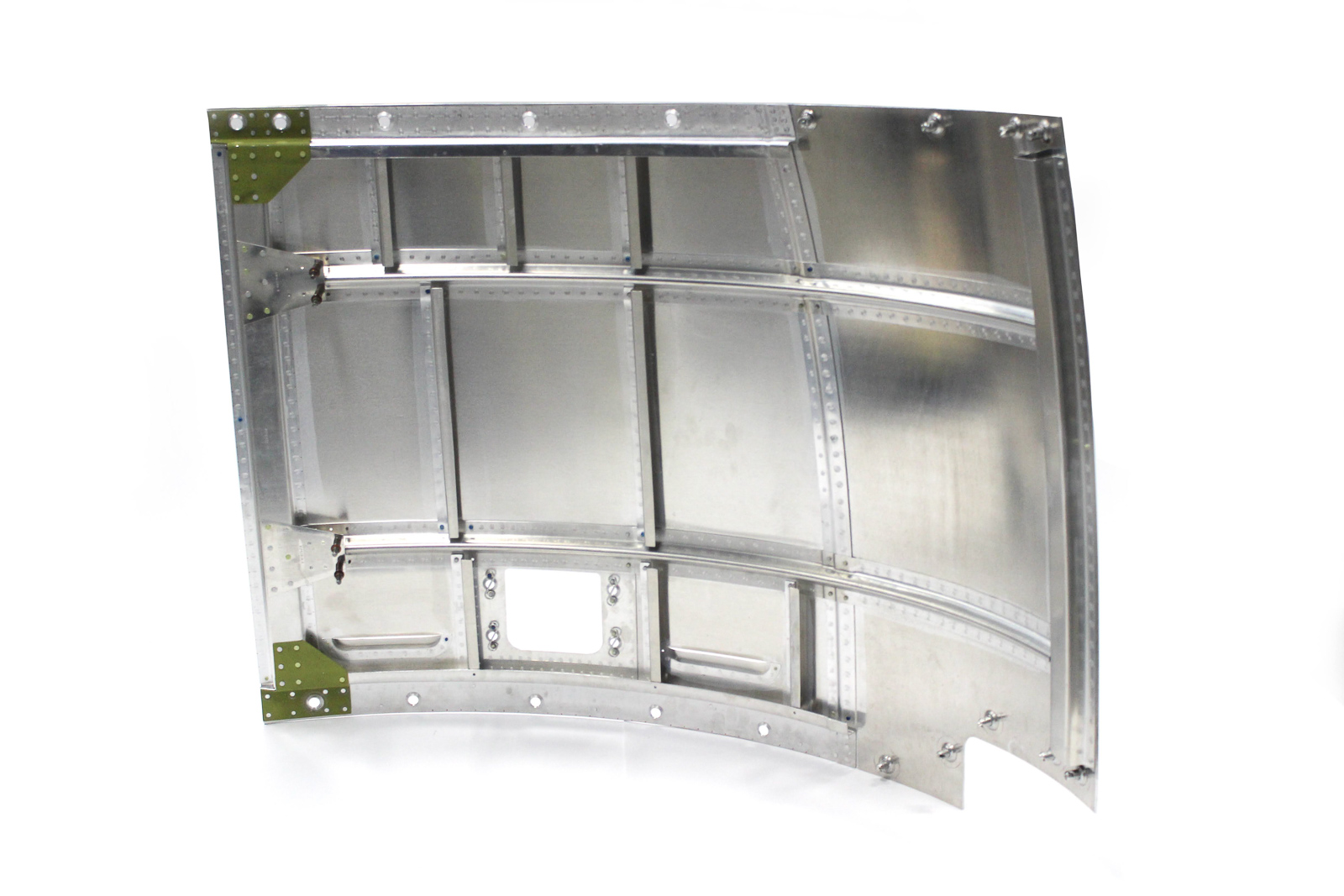 The large upper wing skin panel near the root of the left wing has been trimmed to fit. (image via AirCorps Aviation)