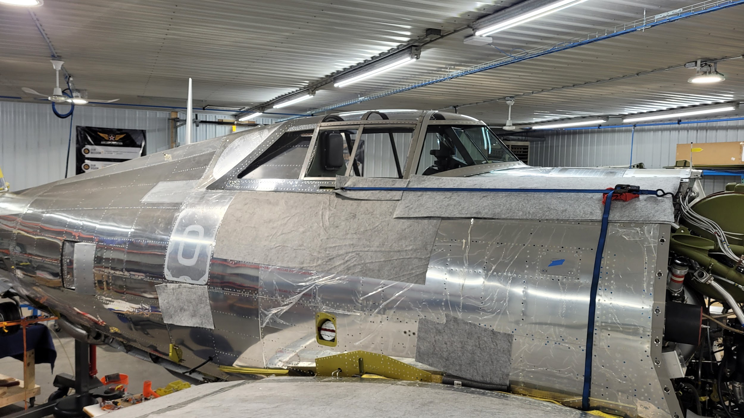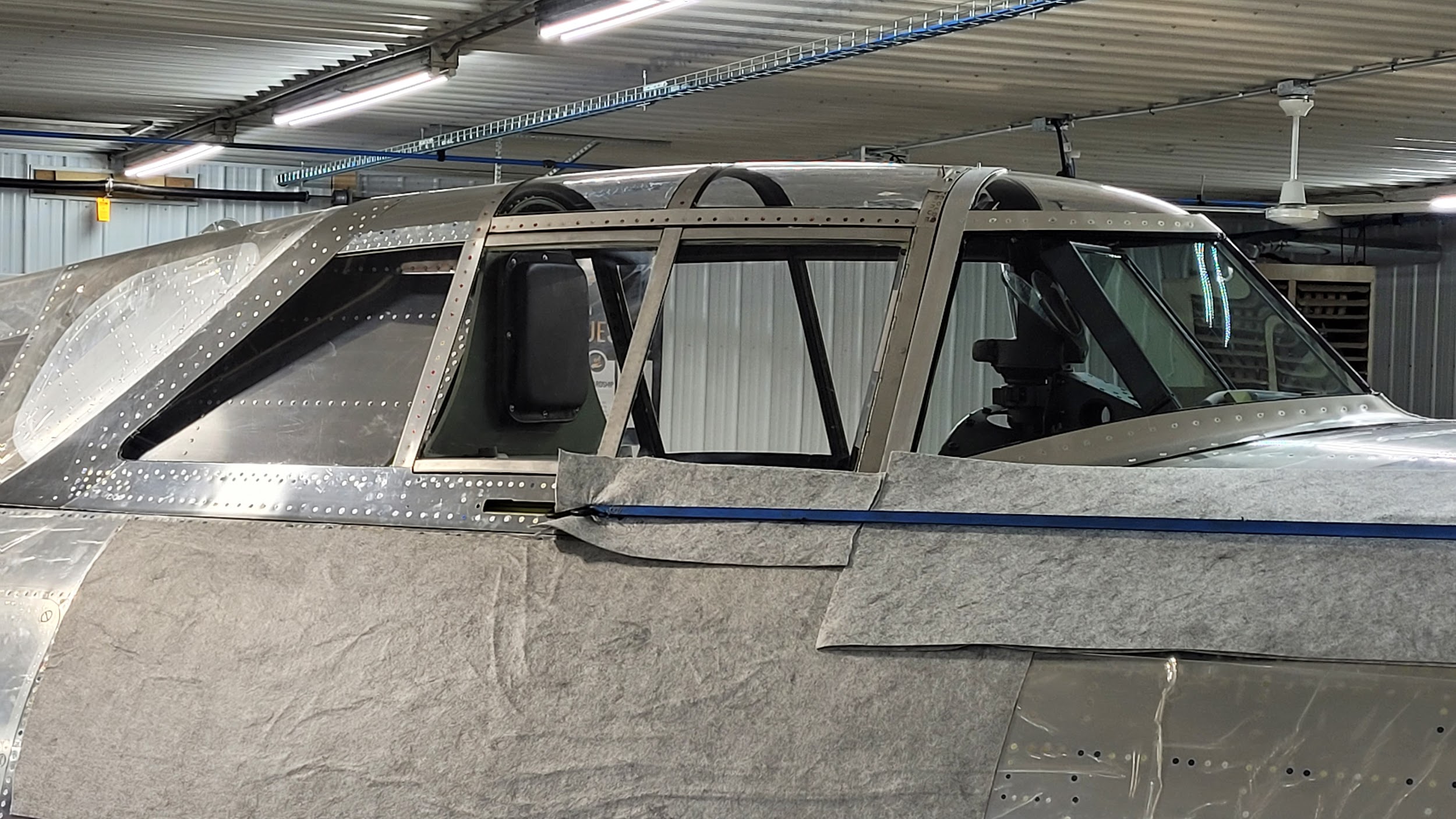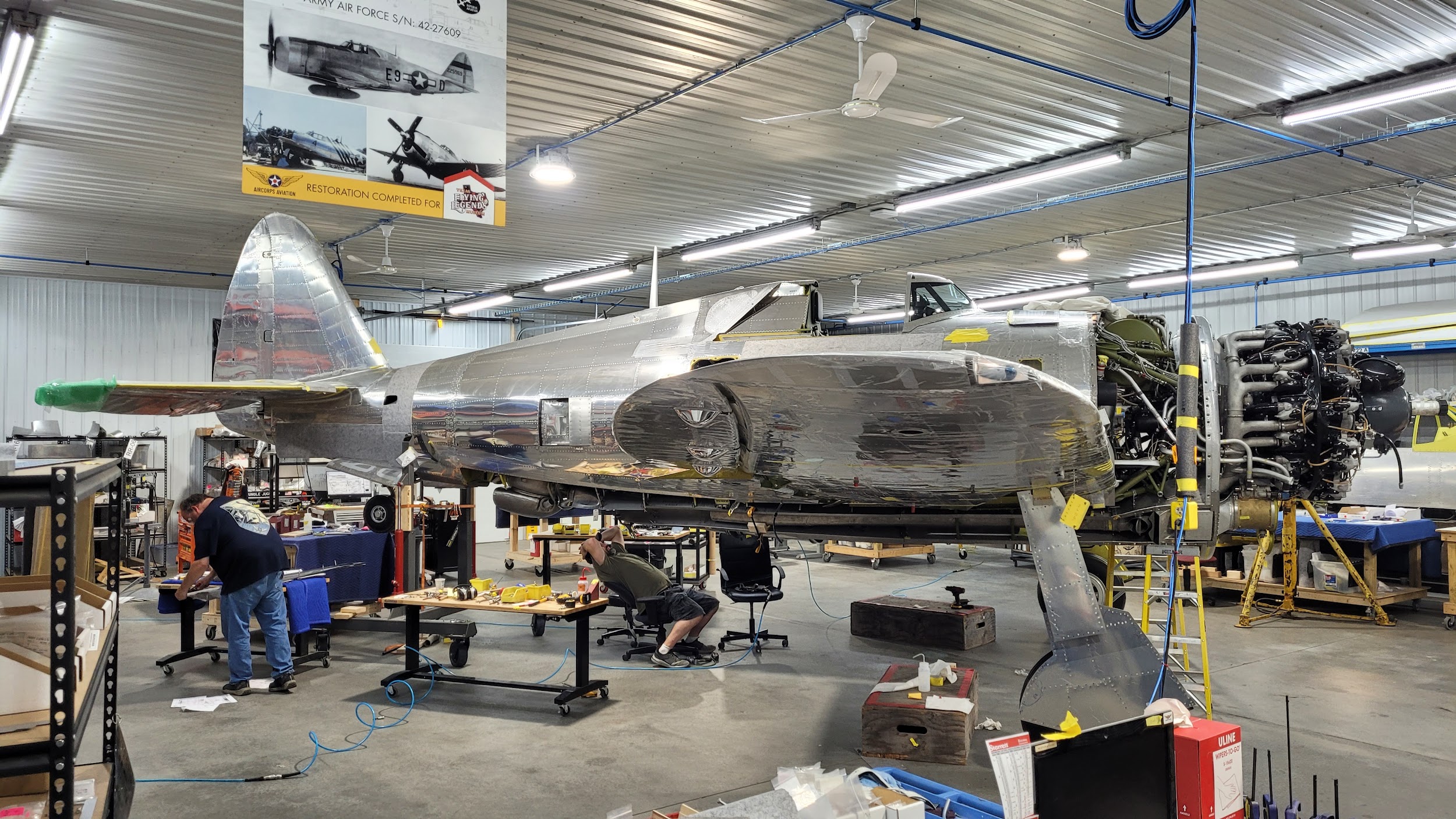 The characteristic razorback cockpit enclosure has been installed on the P-47. It really adds to the finished look of what will soon become the only Republic-built P-47 razorback flying.