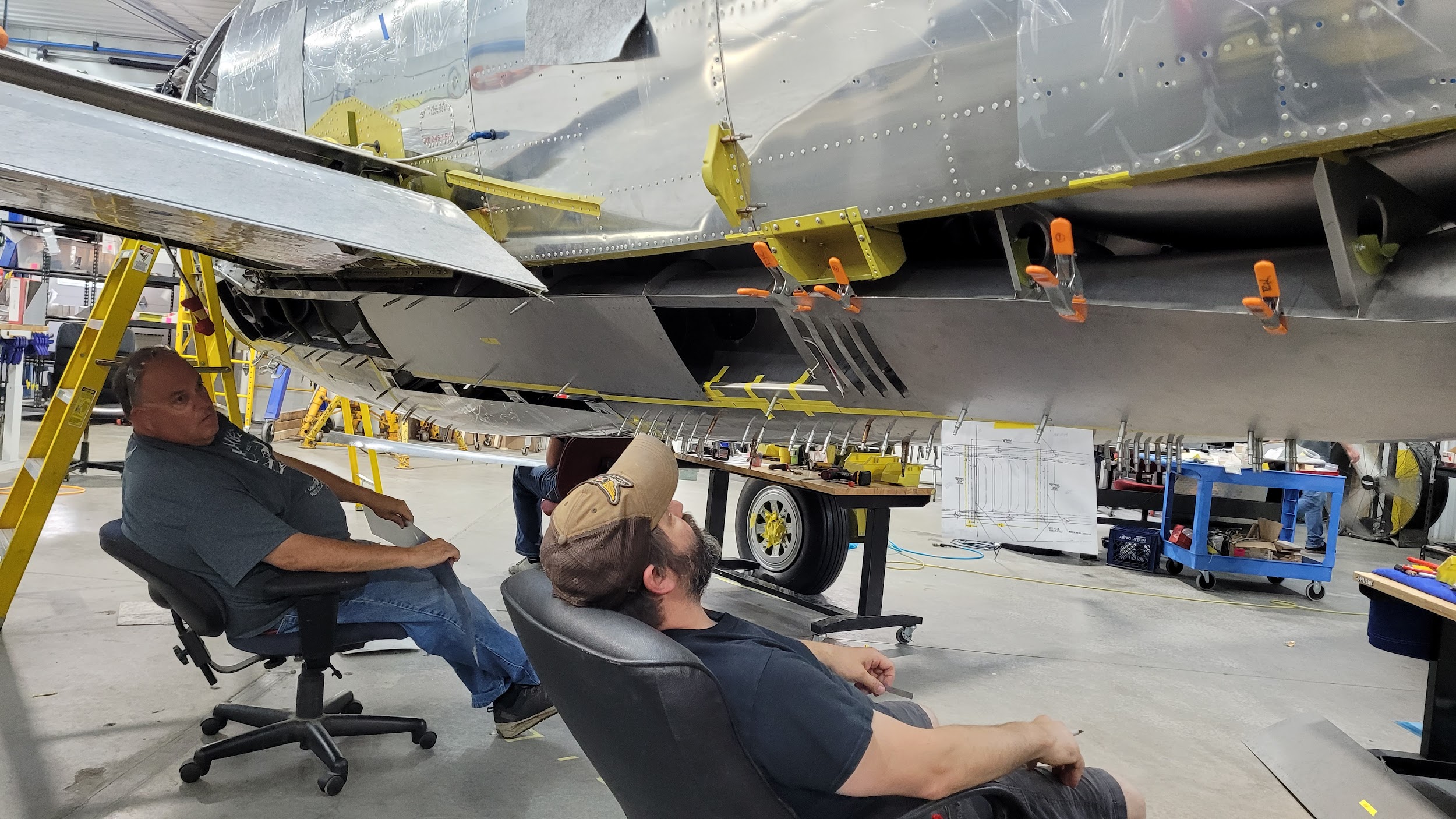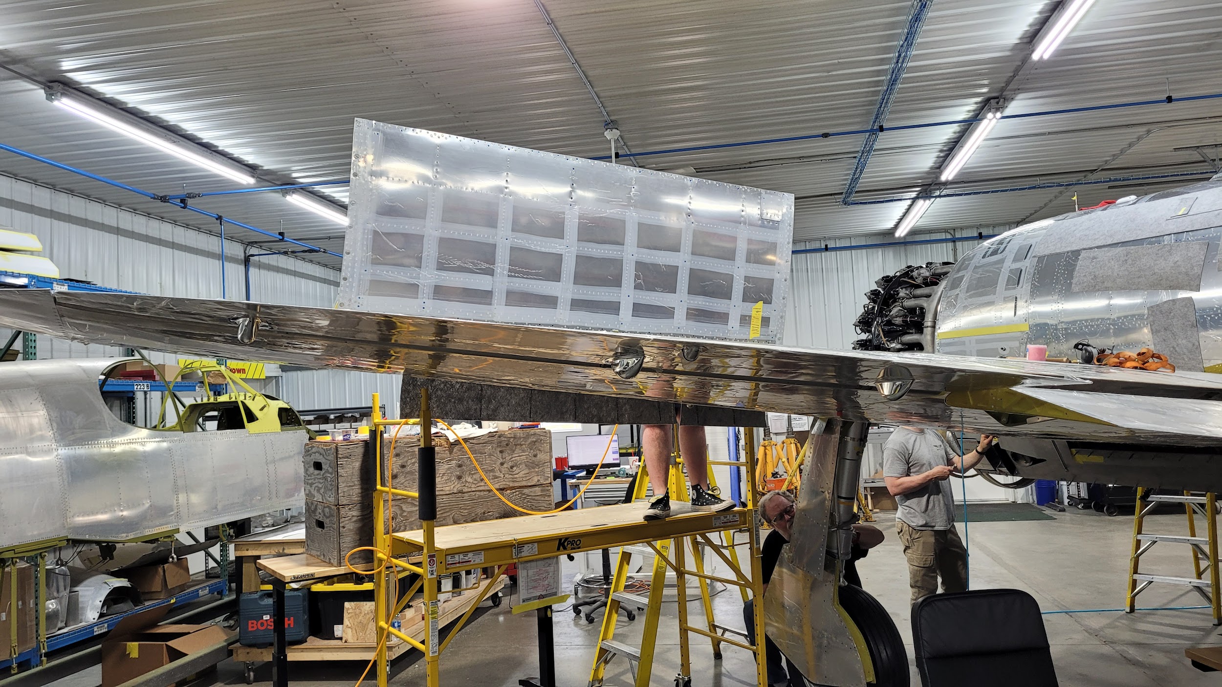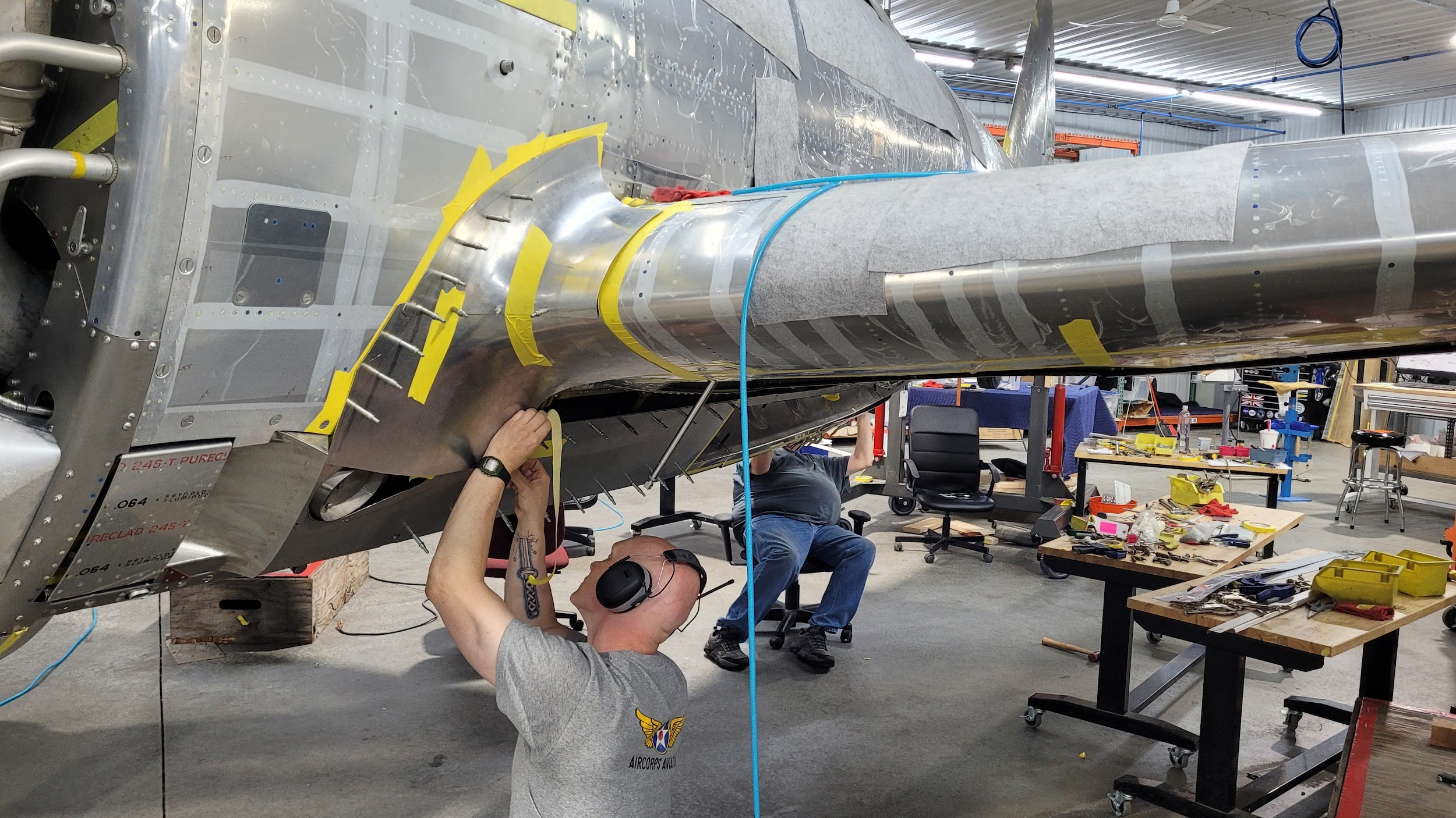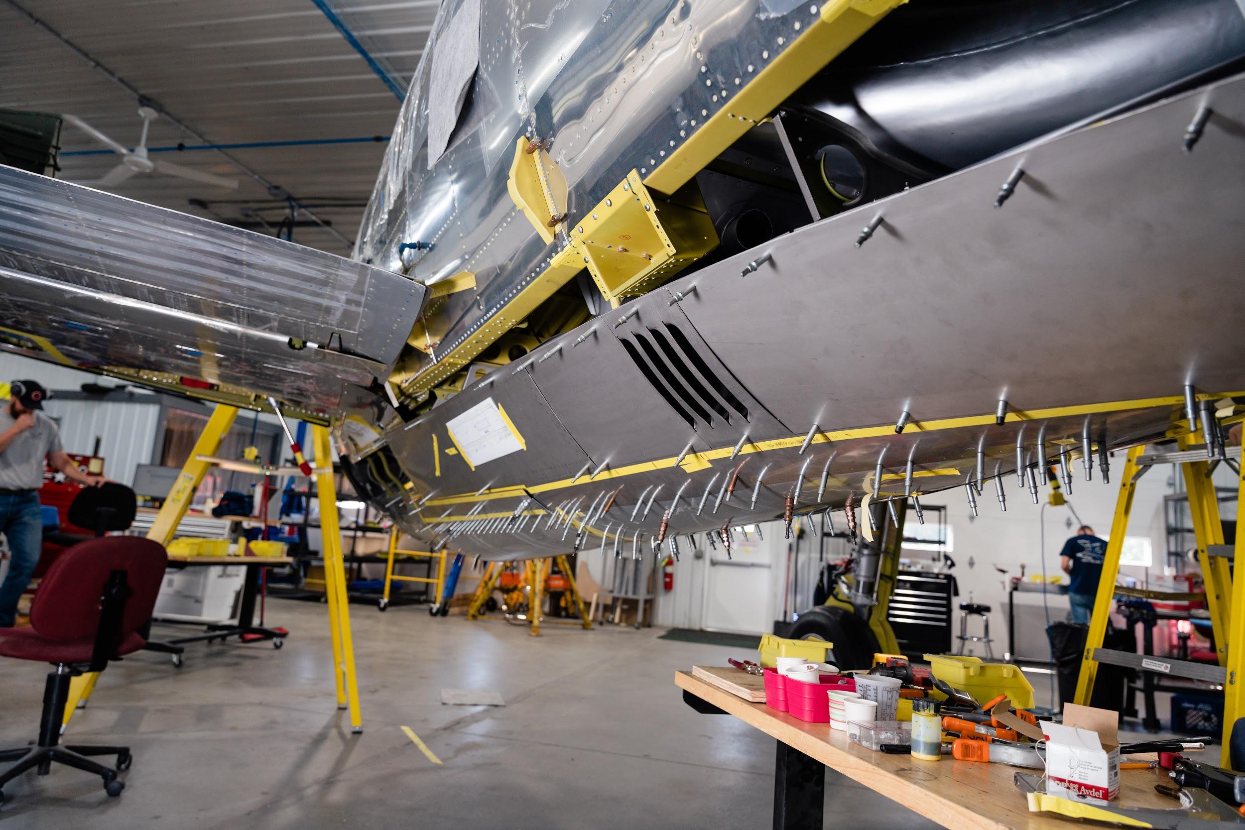 The characteristic razorback cockpit enclosure has been installed on the P-47. It really adds to the finished look of what will soon become the only Republic-built P-47 razorback flying.