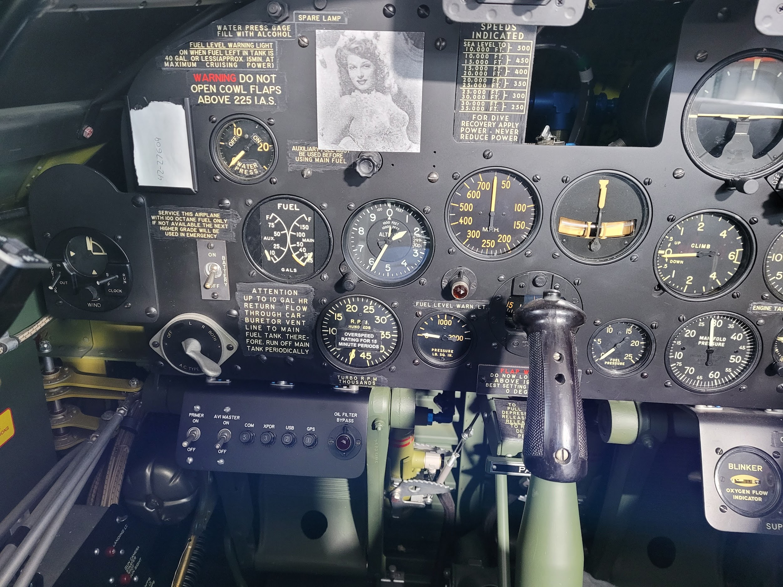 However, the common description of the Thunderbolt as a flying tank is a little extreme. A tank is heavily armored. Calling the P-47 a tank implies that it carried more armor than other fighters. The armor plate installed in US fighters in WWII was pretty much limited to a plate behind the pilot, and sometimes a smaller one just in front of the cockpit. Almost all had bulletproof glass in front of the pilot, either in the windshield itself as P-51s and later P-47s had, or a separate glass plate inside the cockpit enclosure as the razorback P-47s used.