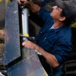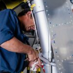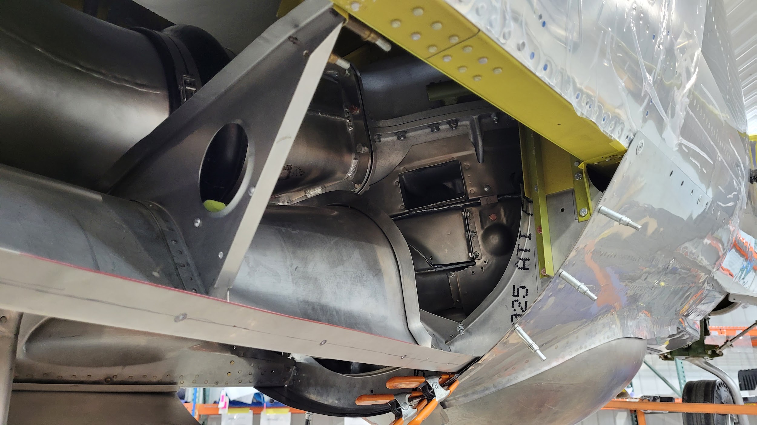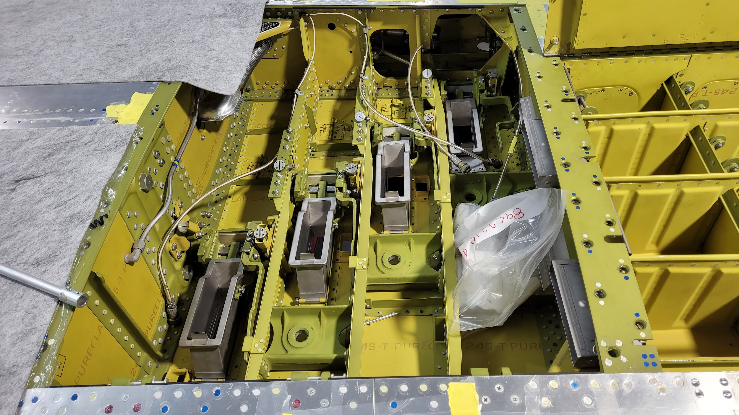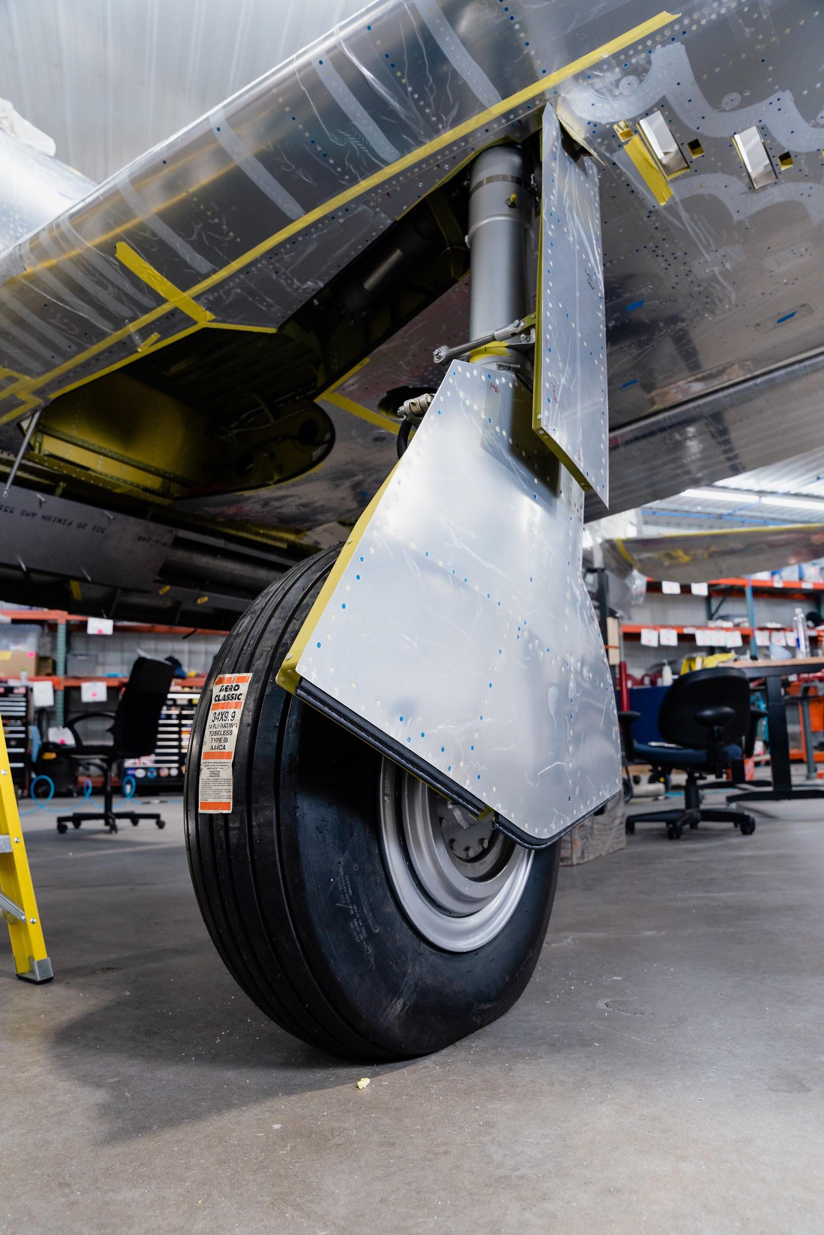 One important project this month involved filling the reservoirs for the main landing gear oleo struts. Oleo struts are a kind of fluid-spring shock absorber filled with gas (nitrogen in this case) and hydraulic fluid.
