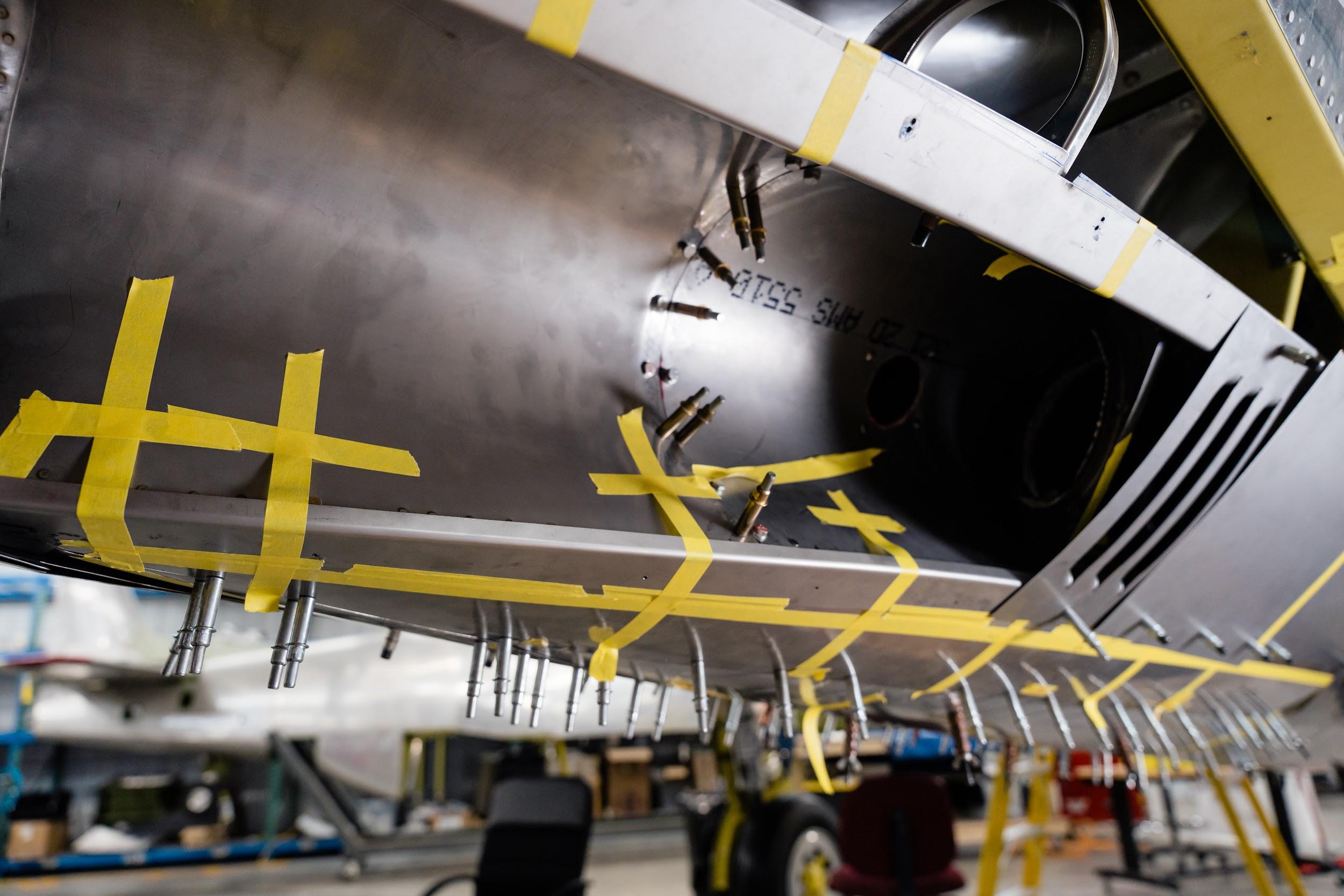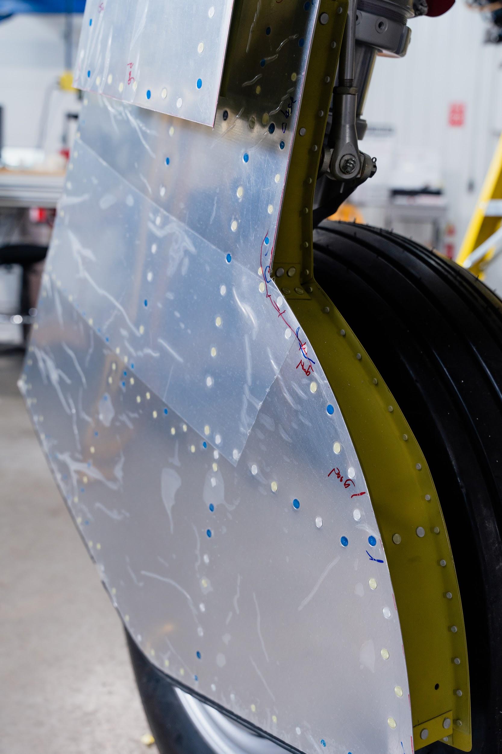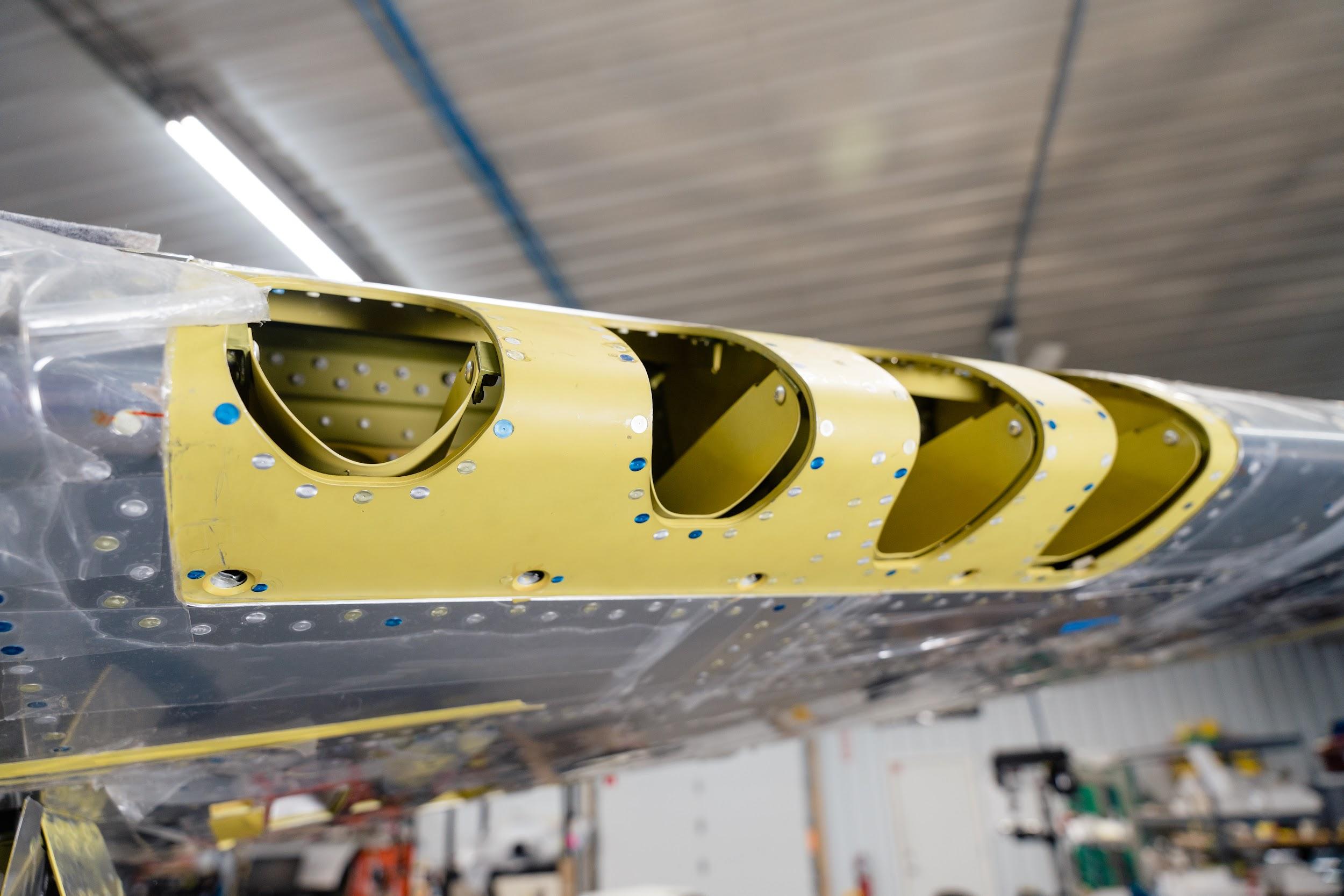 Ammunition bay doors, hinge fairings, and wing root fairings were all part of the restoration workload this month.