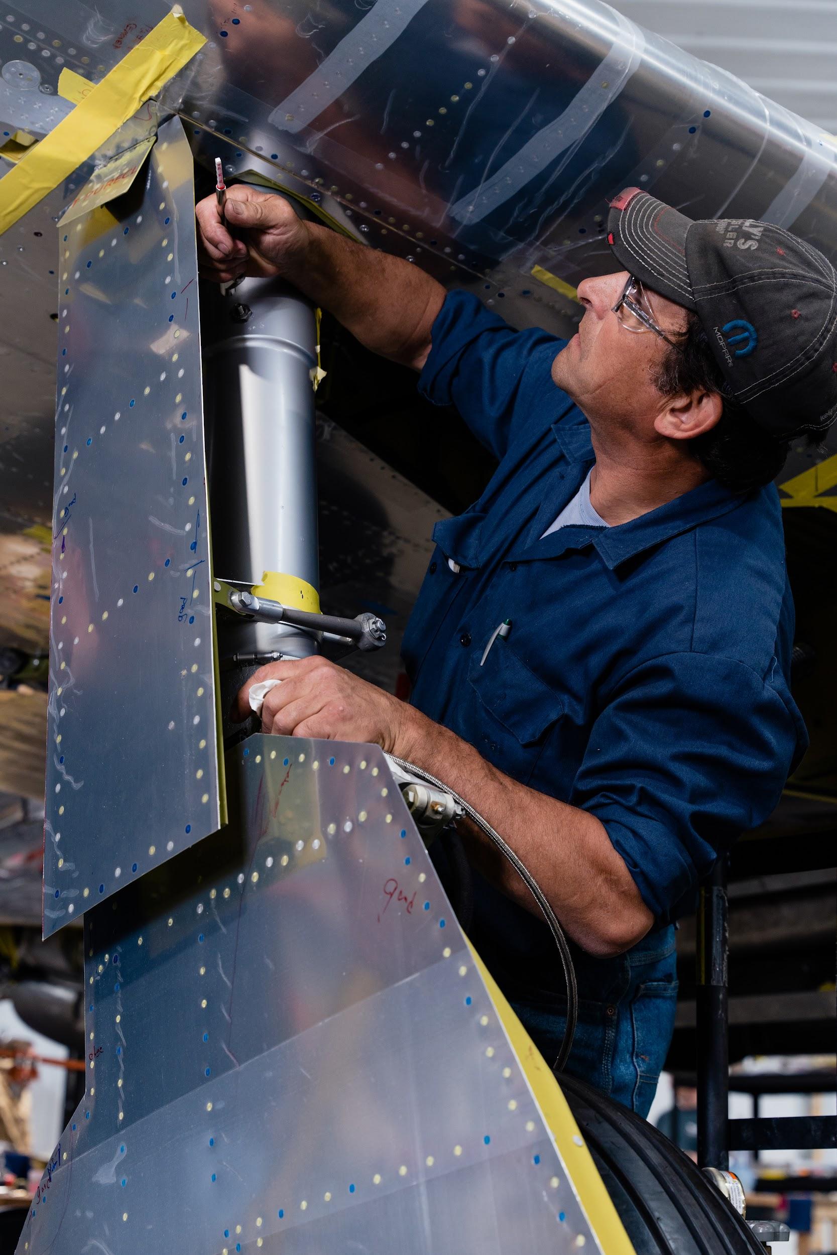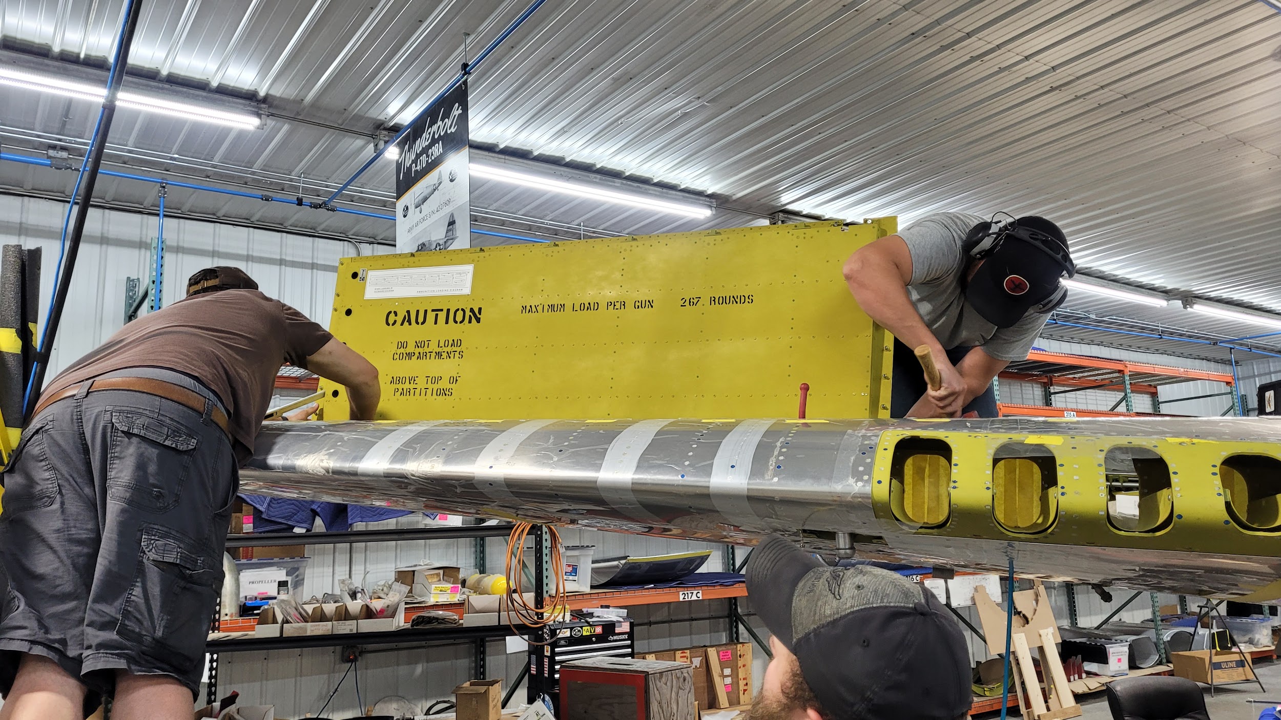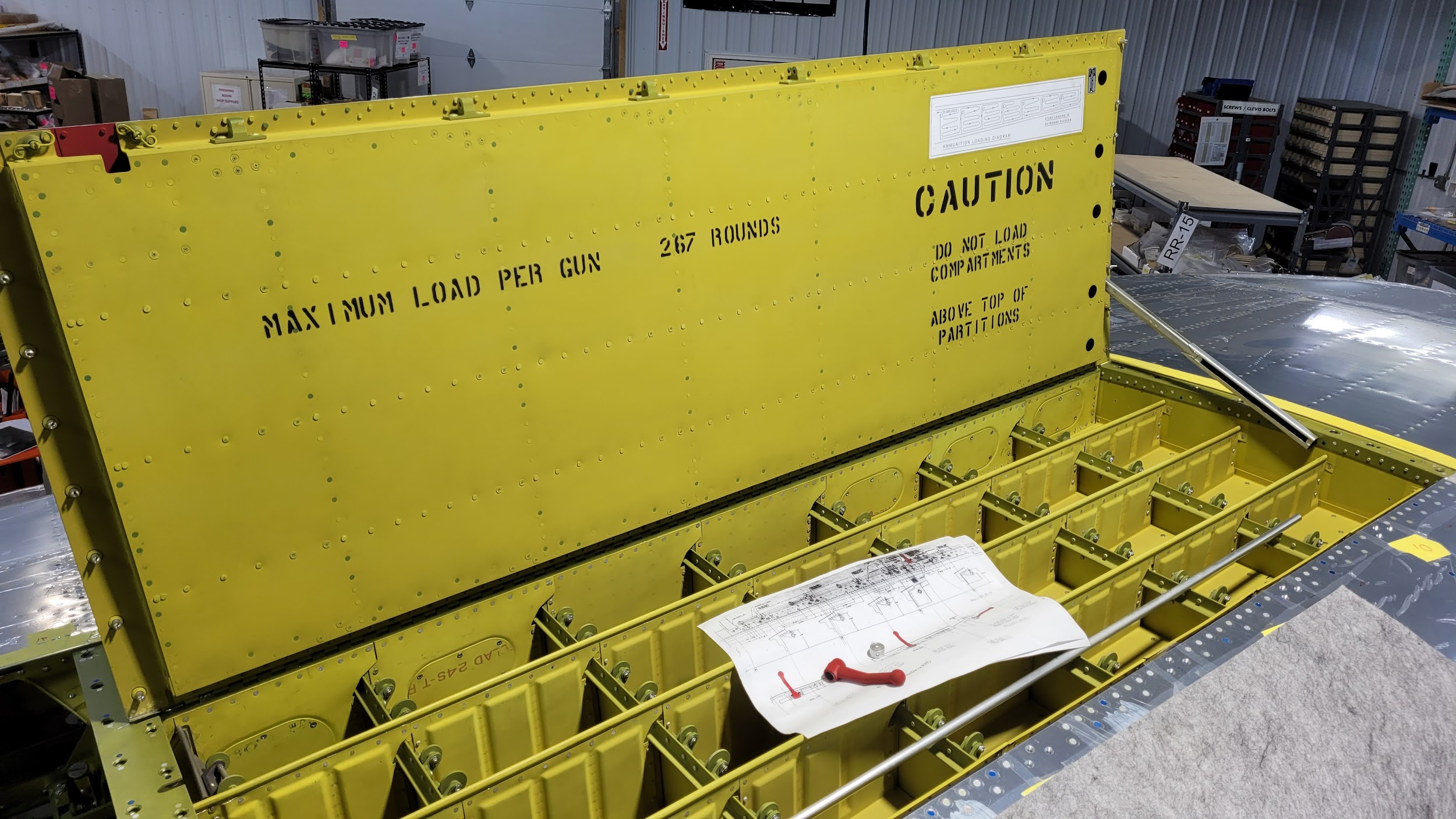 Ammunition bay doors, hinge fairings, and wing root fairings were all part of the restoration workload this month.