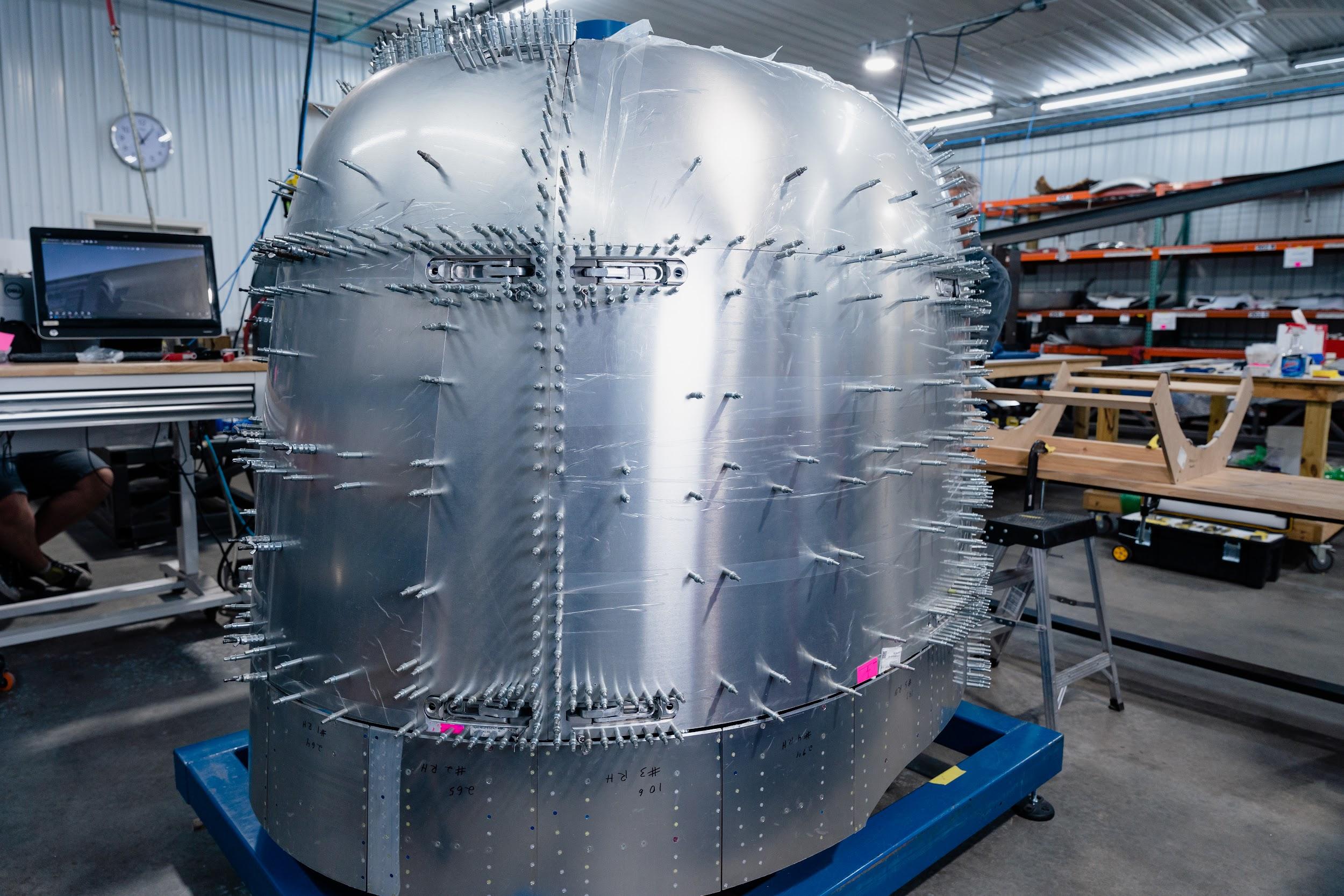 This month, work centered on getting the cowling completed, installing the cockpit enclosure, skinning the fuselage undersides, and installing duct covers.