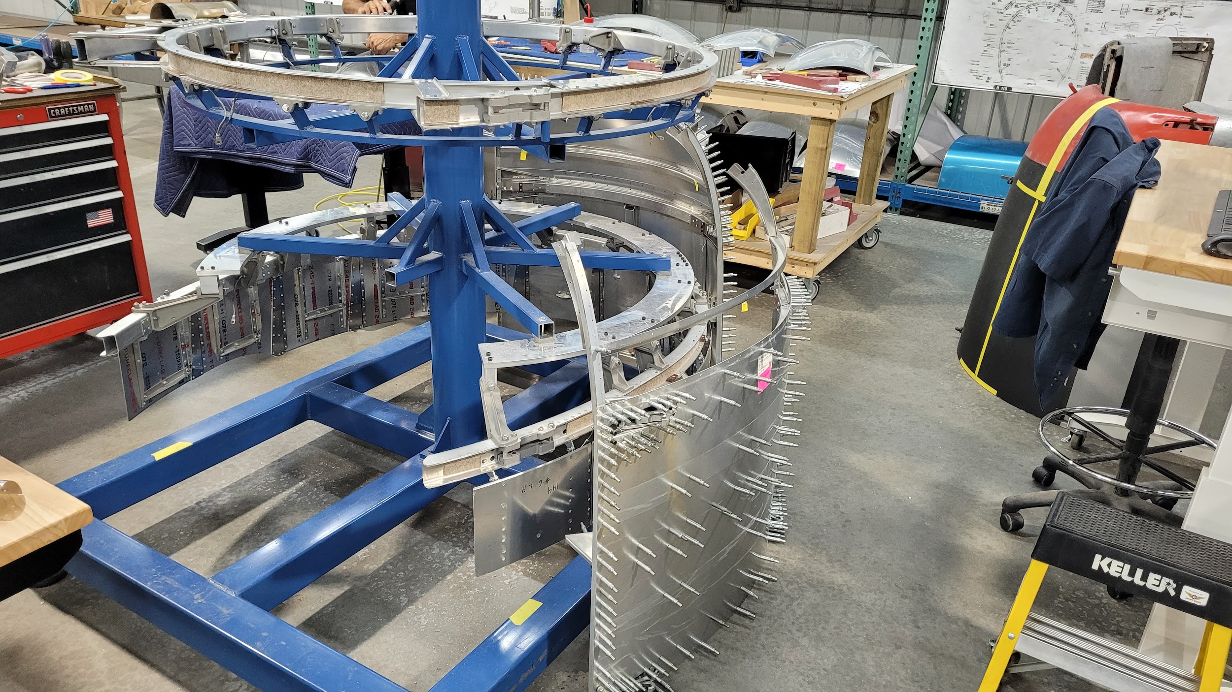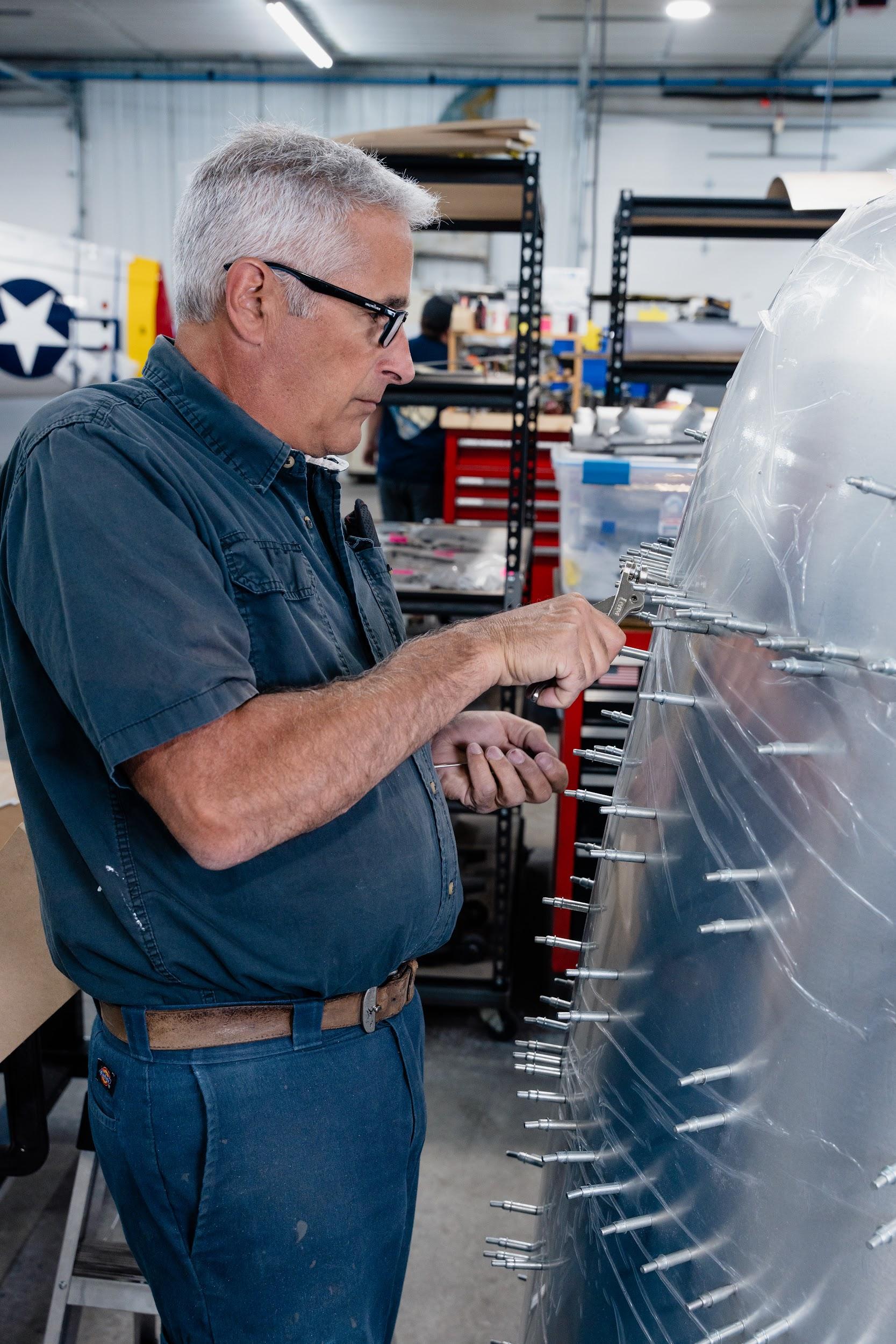 A P-47 Thunderbolt’s engine cowling is replete with complex curves and presents a significant fabrication challenge. Mike has spent months carefully replicating this assembly.