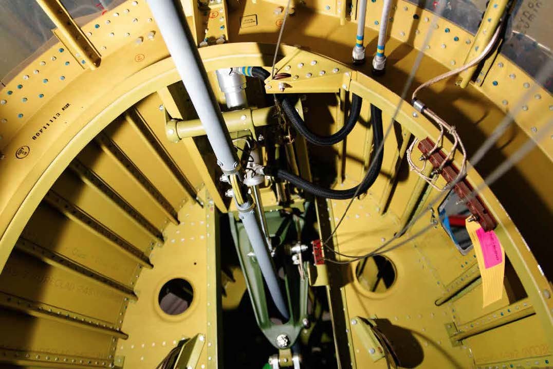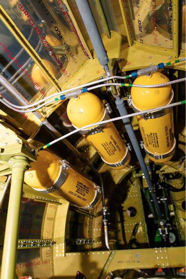 The oxygen tank installation is another non-standard aspect of the restoration, because of course the wartime modification’s crew moved them further aft in the fuselage to provide space for the Christmas Tree Tank.