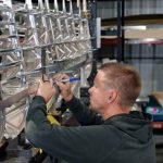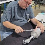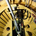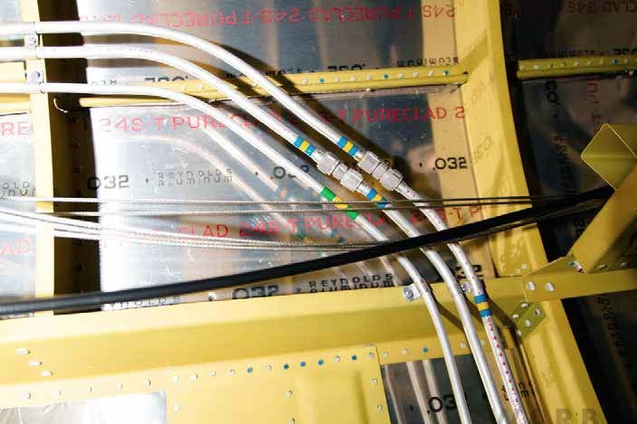 Much of the work this month doesn’t reveal obvious visual changes to the airframe’s exterior, because a great deal of recent effort has involved systems preparation and installation. In a complex fighter like the P-47 – with all of its turbo ducting, engine controls, turbosupercharger, plumbing, and landing gear hydraulics – the behind the scenes elements of the restoration are very time consuming.