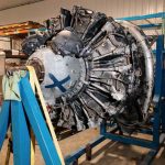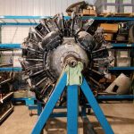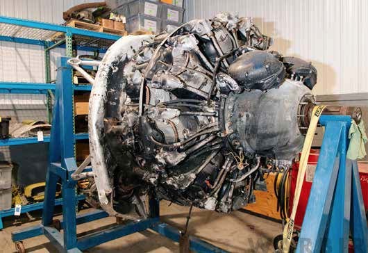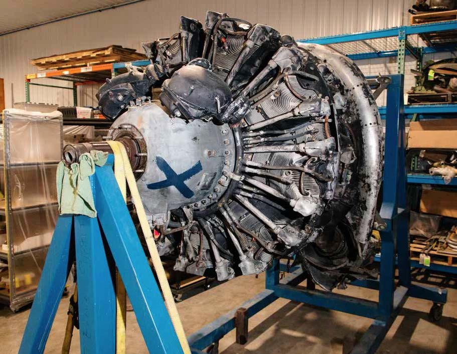 A non-airworthy R-2800 is being used as a placeholder for installing as many of the engine accessories and connections as possible before the rebuilt engine comes in.