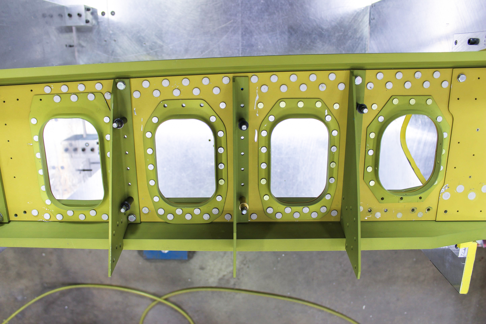The forward ribs in the wheel wells are relieved to make space for the retracted wheels. (photo via AirCorps Aviation)