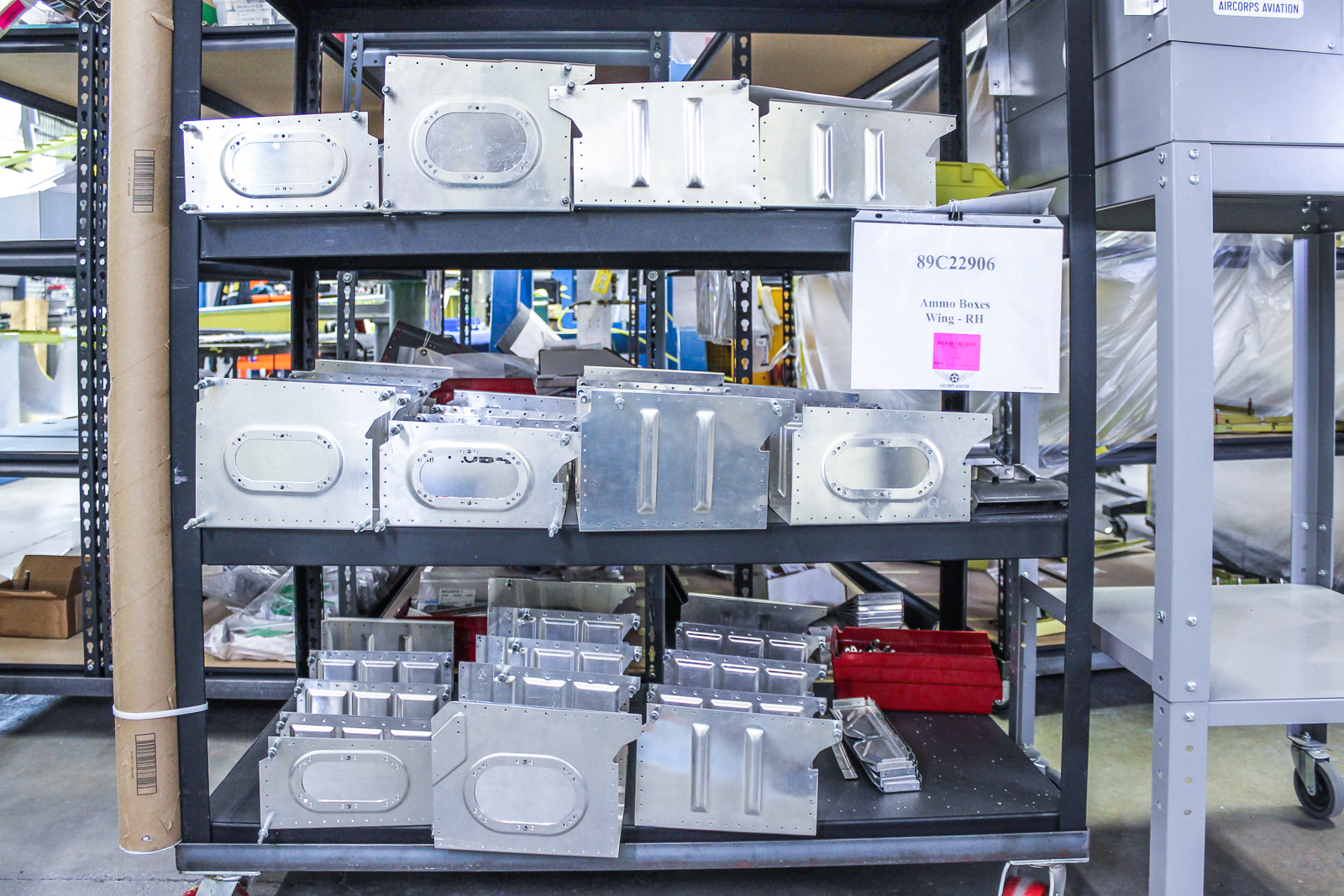 Ammunition boxes await permanent installation. (photo via AirCorps Aviation)