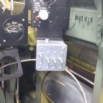 All electrical wiring coming and going from the main switch box and instrument panel is routed through this box. The red capped fitting is where the hydraulic accumulator is serviced with air. (photo via AirCorps Aviation)