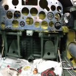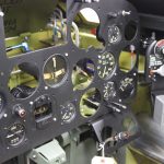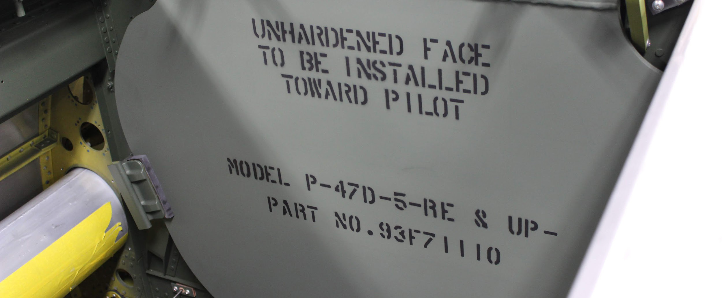 The stencils on the armor plate show nicely here. This part, number 93F71110, was used unchanged on all models from the P-47D-5-RE up to and including the P-47D-25-RE versions. That’s why the stencil says -5 on armor mounted in a -23. (photo via AirCorps Aviation)
