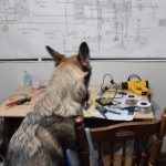 Aaron’s dog Wilhelm is pretty curious about the process of figuring out the wiring harness