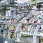 The intercooler exit doors have been fitted. They have enough paint on them to identify them as coming from a P-47 still in service after January 14, 1947. On that date, the red stripe was ordered to be added to the bar section of the insignia. It was most likely an Air National Guard P-47 unit. (photo by John LaTourelle)The exit doors on both sides of the fuselage have the red paint. (photo by John LaTourelle)The image of Randy, Chad and the entire forward fuselage from tail cone joint to the firewall gives an idea of the complexity of this restoration. (photo by John LaTourelle)The right side of the fuselage clearly shows how Republic designed the assembly to be done in upper and lower halves. The completed, permanently riveted lower half contrasts sharply with the unskinned structural members of the upper portion. (photo by John LaTourelle)Here we have the rear face of the intercooler and the ducting diagram. (photo by John LaTourelle)The forward side of the intercooler faces the corrugated zinc chromated main fuel tank covers. (photo by John LaTourelle)The ducting to the exit doors as it appears from the rear of the fuselage. (photo by John LaTourelle)This angle shows the same ducting connecting the intercooler and the exit doors from above. (photo by John LaTourelle)The turbo-supercharger housing section is remarkably large, like most P-47 parts are! (photo by John LaTourelle)Rob is putting finishing touches on the upper intercooler ducting. (photo by John LaTourelle)We appear to have our ducts in a row! (photo by John LaTourelle)This detail shot shows the support brace for the radio shelf. (photo by John LaTourelle)The intercooler exit door control shaft bracket is clecoed together, the shaft is visible at the bottom. (photo by John LaTourelle)The same bracket viewed from the exterior side of the fuselage. (photo by John LaTourelle)Up close to the bracket we can see the historically accurate 40’s Alclad logo applied to the aluminum. Alclad was an Alcoa Aluminum product. The AN-A-13 ALCLAD logo is applied after the modern logo has been stripped from the new aluminum stock. (photo by John LaTourelle)Reynolds Aluminum’s WWII logo naturally differed from the Alcoa Alclad logo and both vendors supplied material for the P-47. Their version of aluminum alloy sheet with an unalloyed 100% aluminum outer layer to fight corrosion was called Pureclad. (photo by John LaTourelle)The red circled F 138 digits are inspector stamps. (photo by John LaTourelle)This is an upper fuselage baffle at the upper crosstie station. (photo by John LaTourelle)The part number is clearly stamped on this casting. It is the support assembly for the pilot’s hydraulic controls. (photo by John LaTourelle)The inspection stamps attest to the bolts having been properly torqued on this section of the lower firewall. Each inspection stamp that would have been used in the Evansville plant is faithfully duplicated in the restoration. (photo by John LaTourelle)Viewed from the exterior, this boxlike structure is a panel assembly, cockpit wall-right hand lower rear. (photo by John LaTourelle)89F11132 is the bottom fuselage frame at station #285. The green ring is the turbo-supercharger mounting ring. (photo by John LaTourelle)Randy works at fitting a section of a fuselage longeron. (photo by John LaTourelle)Skin sections are fitted and clecoed to the forward section of the “razorback”. (photo by John LaTourelle)The opposite side shows in this photo. The triangular structure with the forging at the top is the rollover protection assembly. (photo by John LaTourelle)Chad works on a piece of skin located on the upper fuselage in front of the cockpit. (photo by John LaTourelle)Chad fits the skin to the forward top fuselage frame. (photo by John LaTourelle)One of the fuel filler openings is visible in the lower center of this image. (photo by John LaTourelle)