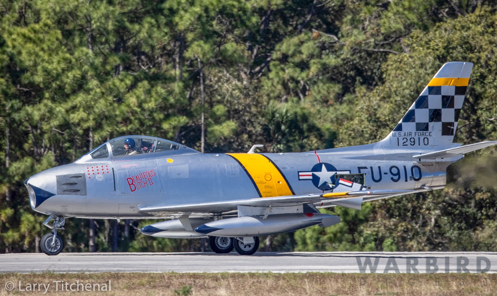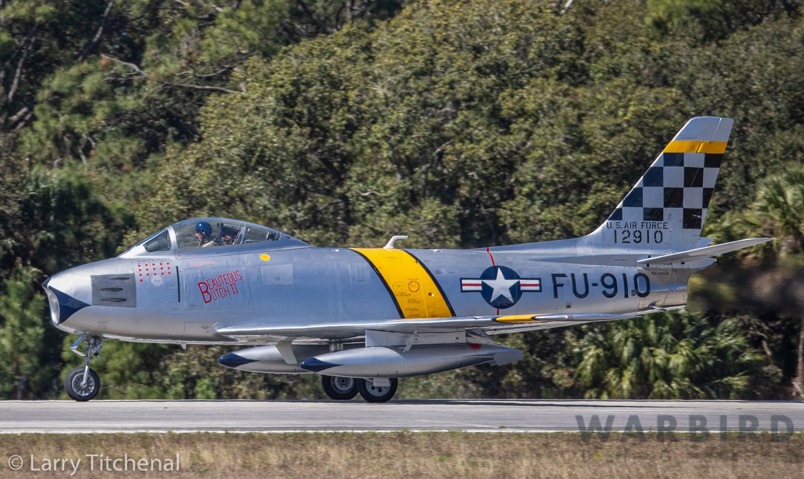 Many thanks to Doug Matthews, Classic Fighters of America for their help in creating this article. We also to offer our profuse thanks to Larry Titchenal for allowing us to use his marvelous images of the Sabre’s first flight!