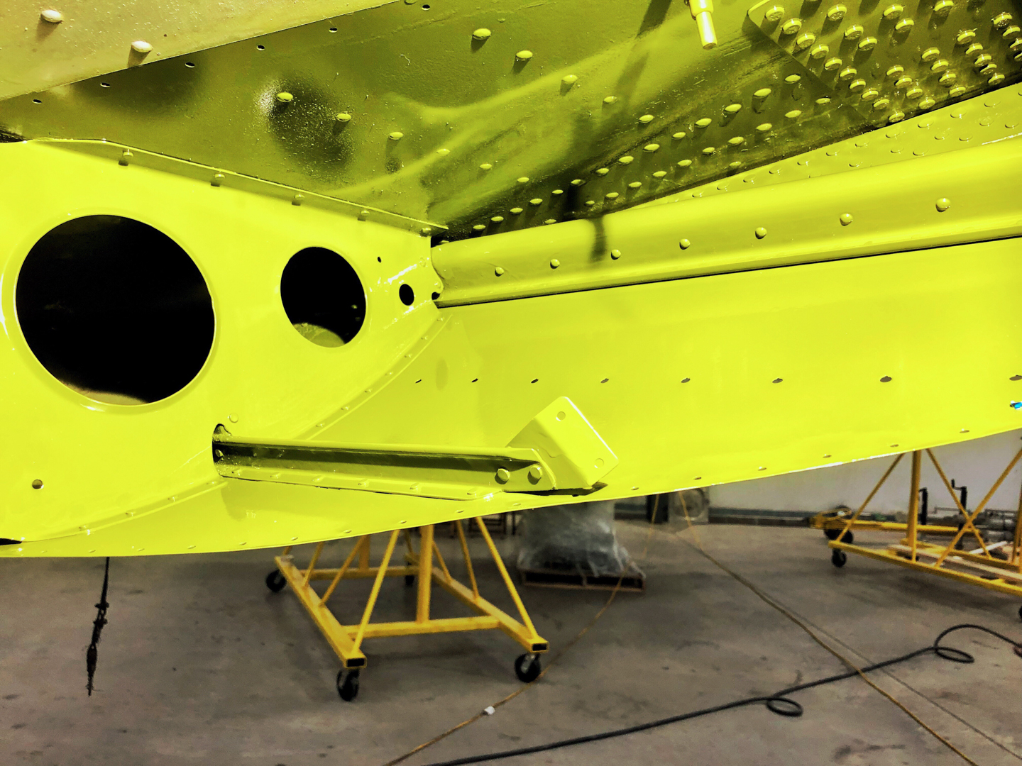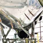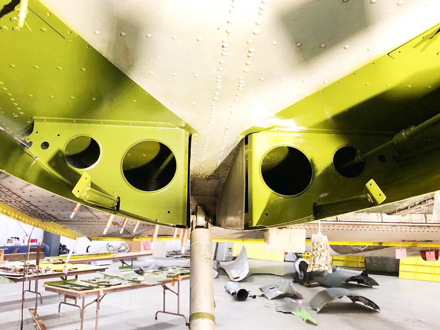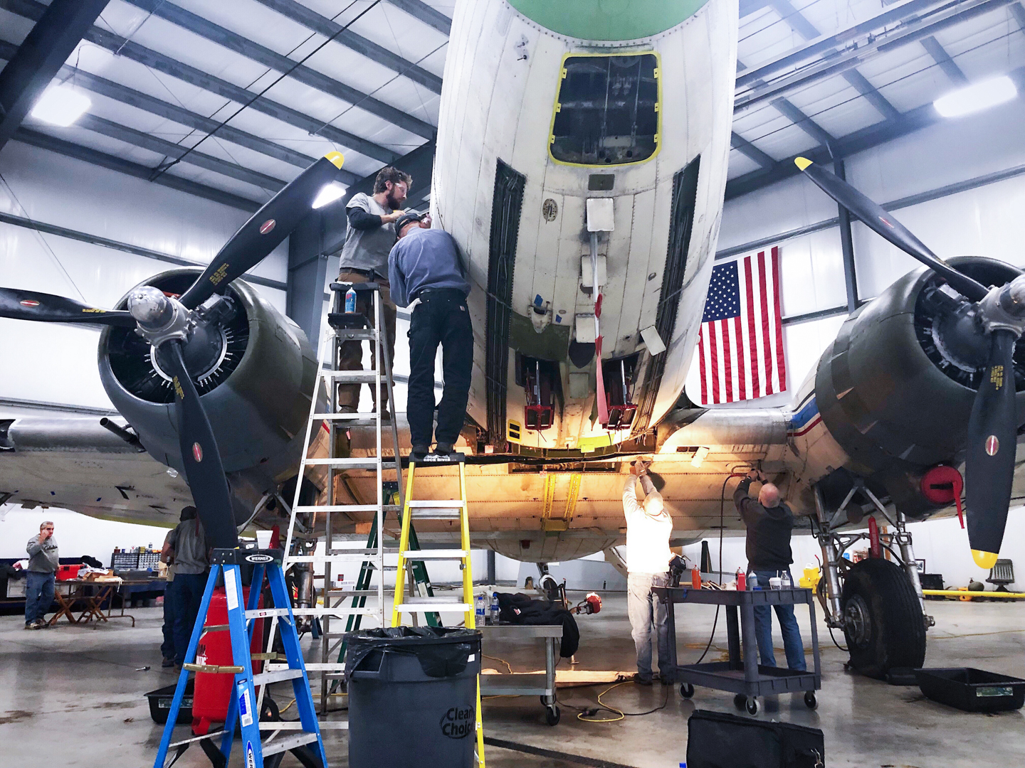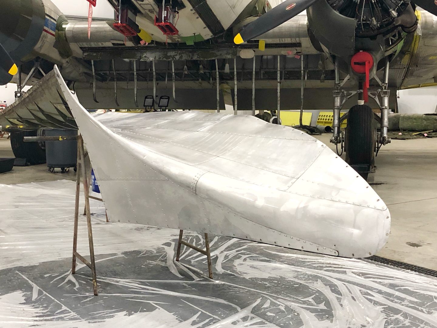 Over the past few months, the team at Vintage Wings Inc. has been busy bringing Beach City Baby back to full airworthiness and turning her into a true “flying museum” to spread the word about this particular C-53’s colorful history. As many of you are aware from our coverage on the aircraft, after arriving in Franklin Pennsylvania, the Vintage Wings Inc team wasted no time getting to work in making the necessary repairs and inspections to bring the historic cargo plane into better-than-new status. The team recently removed both wings for an Inspection and Repair As Necessary, or IRAN program to replace, fix, and/or repair any aircraft parts or components still needing attention. The group also recently completed the last of the C-53’s Airworthiness Directives ADs) by adding doublers to the aircraft’s wing spars. Many components and parts have been removed, then fully refurbished, and are awaiting final installation and paint. PPG Aerospace has generously donated all of the paint stripper, surface preparation, primer and paint to complete the project once mechanical repairs are finished.