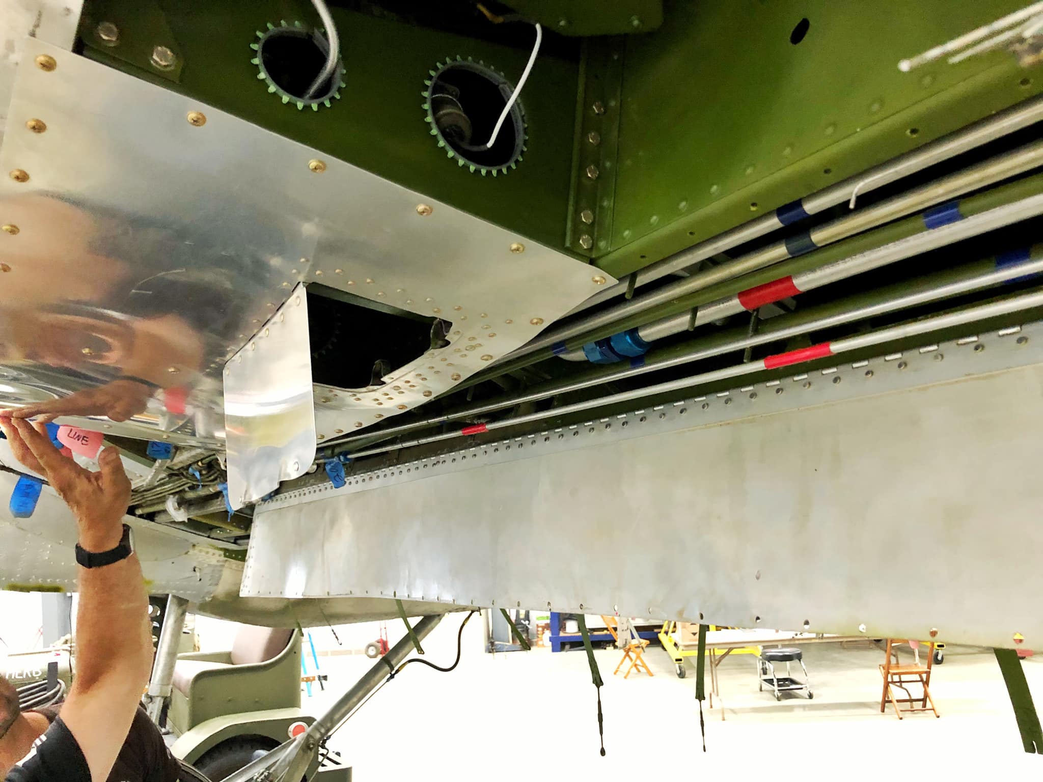 While the surface prep was wrapping up, other members of Vintage Wings Inc. began the task of replacing sections of damaged sheet metal and repairing anything else that needed attention. Jerry Sass, our sheet metal expert, led the way. He not only produced beautiful replacement parts, but also taught younger team members along the way. It is this kind of passion and dedication, something that Jerry always displays, that will keep these airplanes flying well into the future and help engage America’s youth to continue in our footsteps.