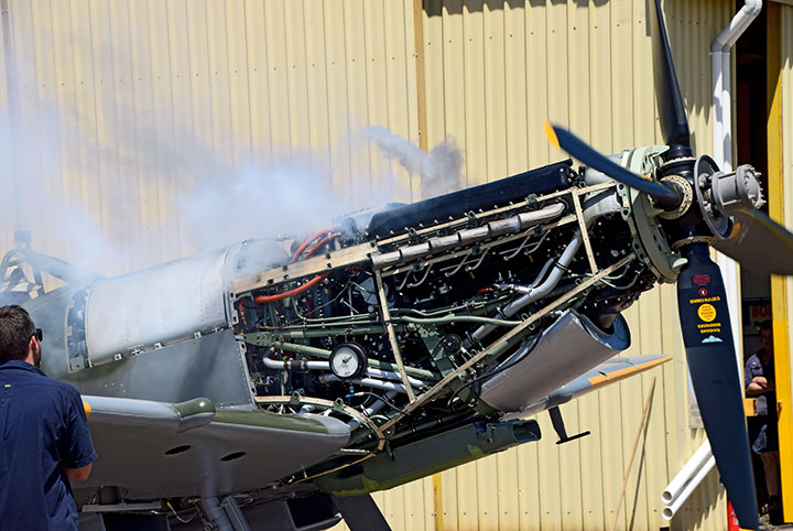 Work currently proceeds on Ross Pay’s Australian-built CA-18 Mustang Mk.21 A68-107 (VH-AUB). The Mustang is undergoing some airframe work and routine engine maintenance.