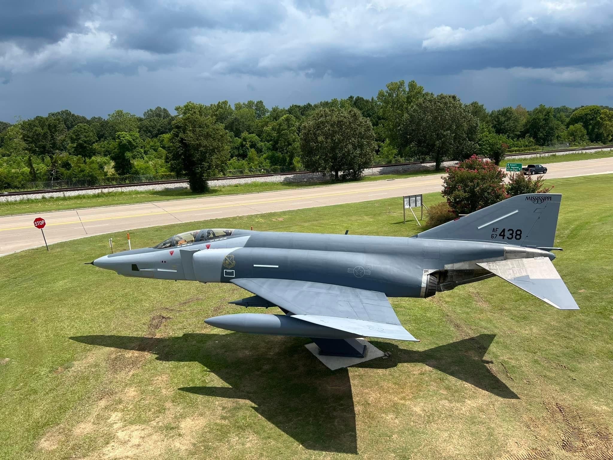 Back in late June, we posted a small article HERE about the East Mississippi Veterans Foundation and their effort to create a memorial park to Mississippi’s military veterans in a plot of land adjacent to historic Key Field, which hosts an Air National Guard facility in Meridian, Mississippi. A major element for this new memorial park had just arrived on site at time of last writing, this being McDonnell Douglas RF-4C Phantom II 67-0438. The aircraft, following decades of desert storage at Davis-Monthan Air Force Base in Tucson, Arizona, had made the long journey to Meridian on the back of a low-loader. A team off-loaded the weather-beaten jet and mounted it atop a pylon, where it was due to receive some significant TLC for formal display in late August.