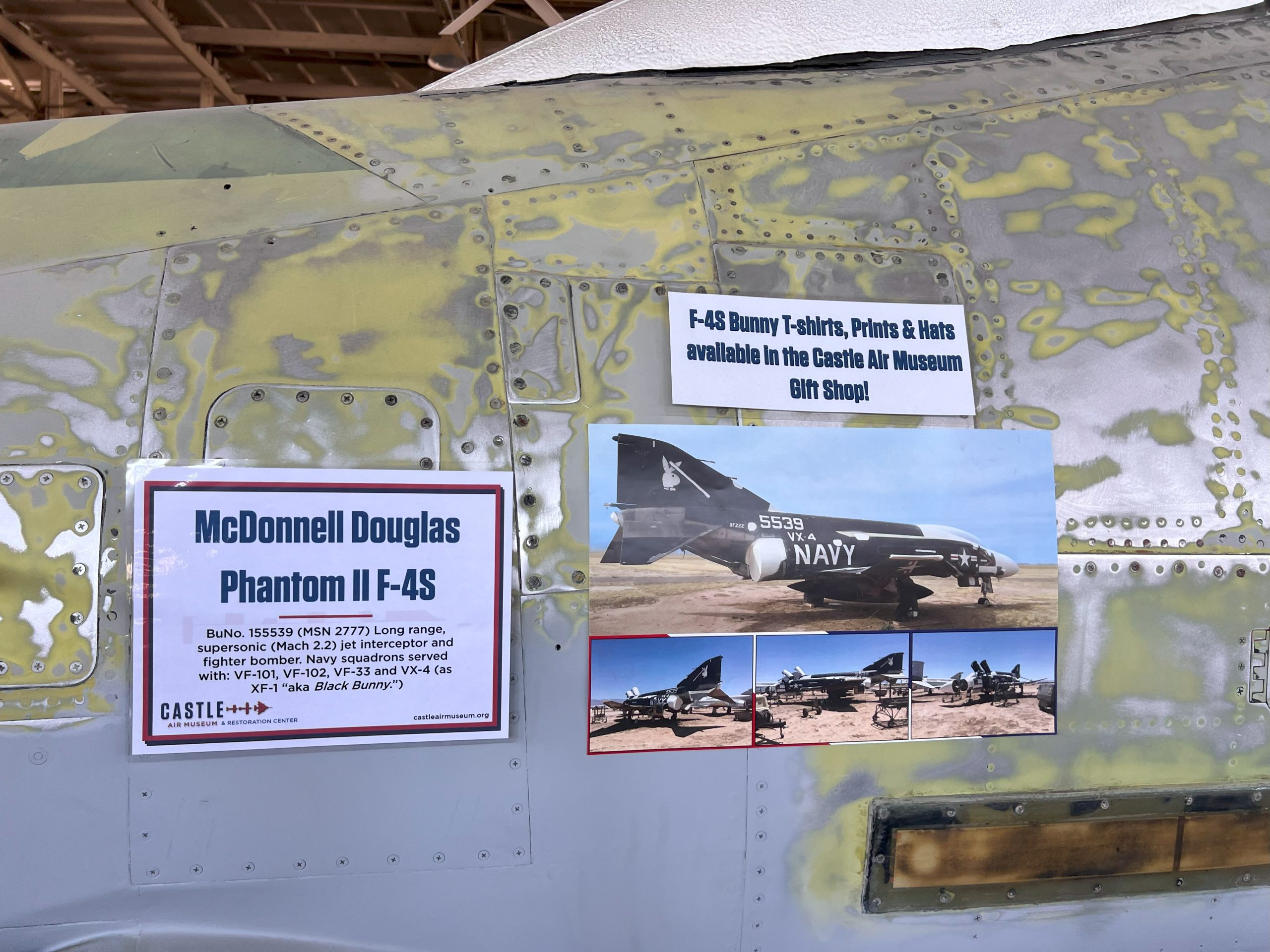As with almost every volunteer-led aircraft restoration, whether it be an airworthy restoration or a static one in the case of BuNo 155539, the museum conducting the restoration needs funds to complete the restoration of the “Black Bunny”, which has led to the museum having a dedicated donation box for the “Black Bunny” Phantom in the museum gift shop. The aircraft is still some ways off before the Castle Air Museum places BuNo 155539 on display, but when it does, it will join the museum’s Thunderbird Phantom, F-4E 66-0289, on display.