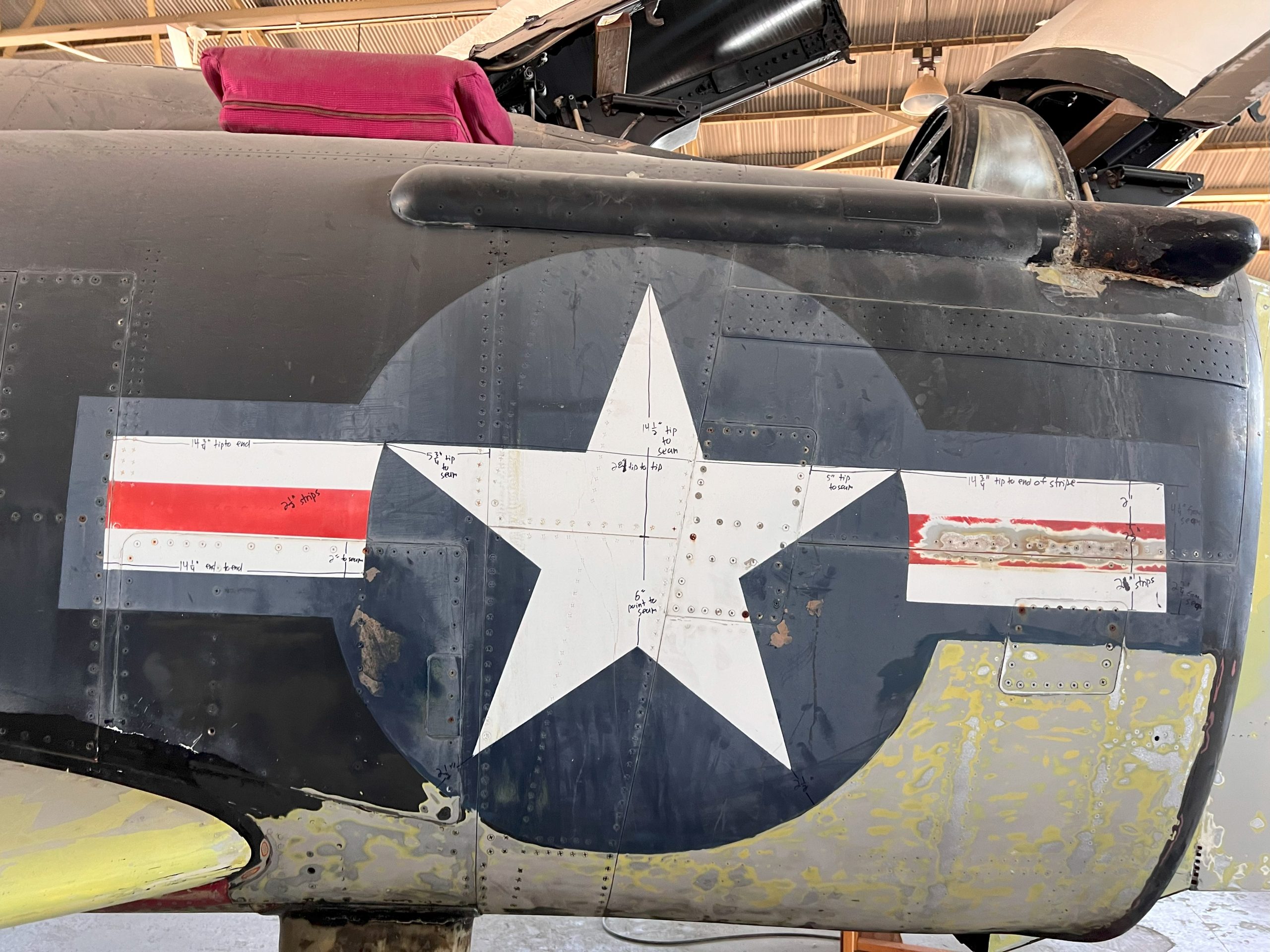 US roundel on the forward fuselage of the Phantom, with surrounding paint having been stripped back to reveal the primer (Adam Estes)