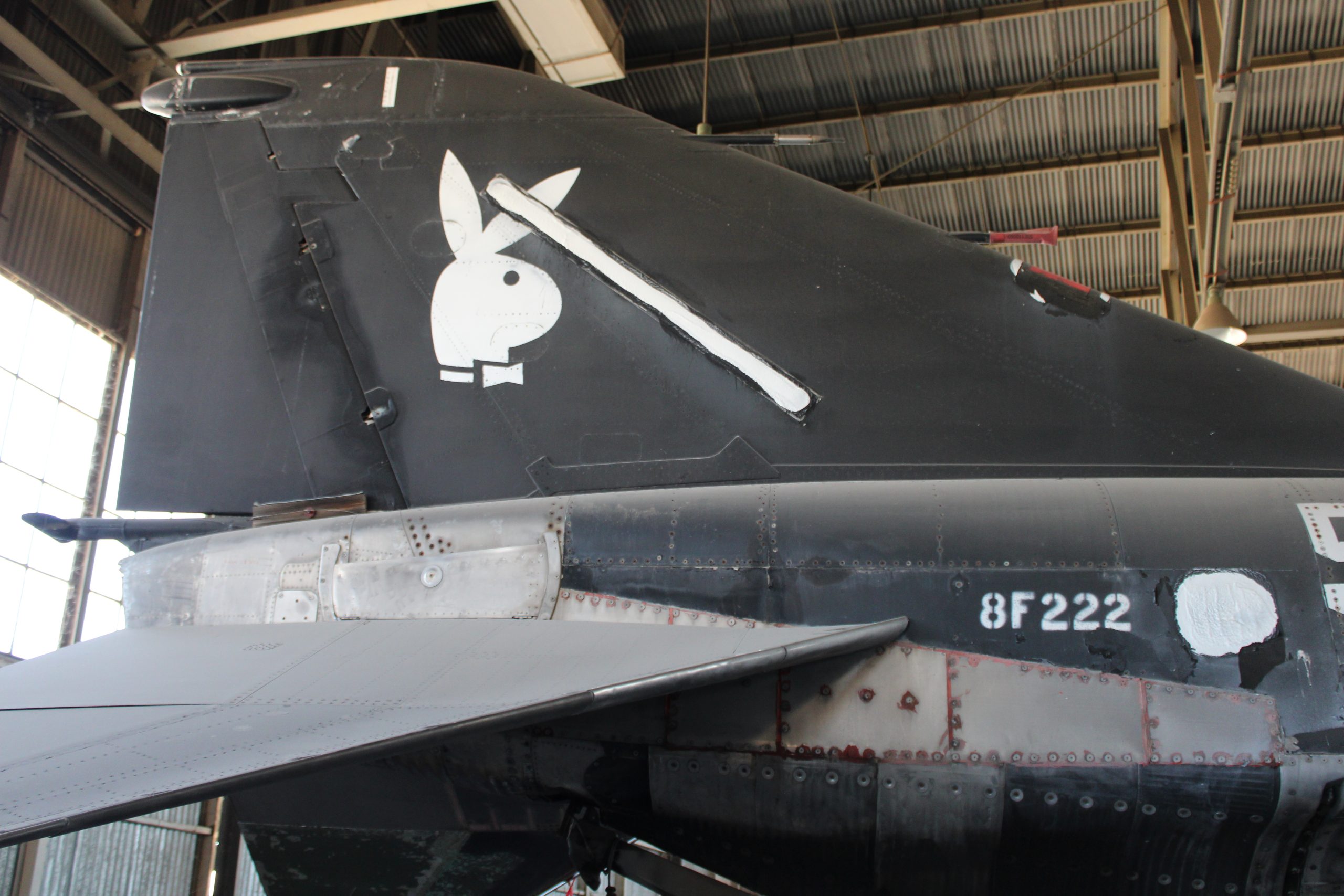 Detail of the Playboy painted on the tail of Vandy 1. The number 8F222 was the Process Control Number (PCN) applied to 155539 after its arrival at Davis-Monthan(Adam Estes)