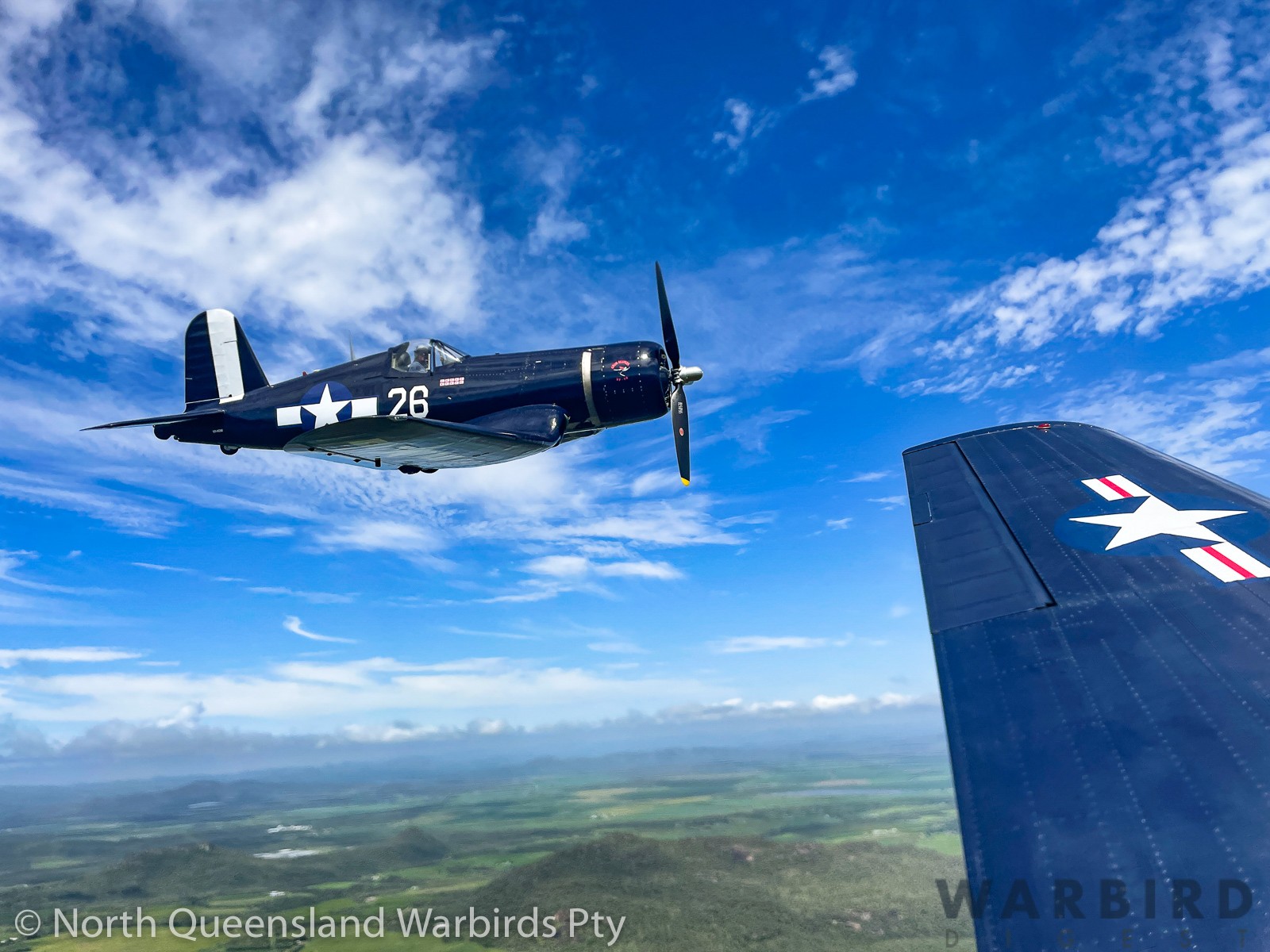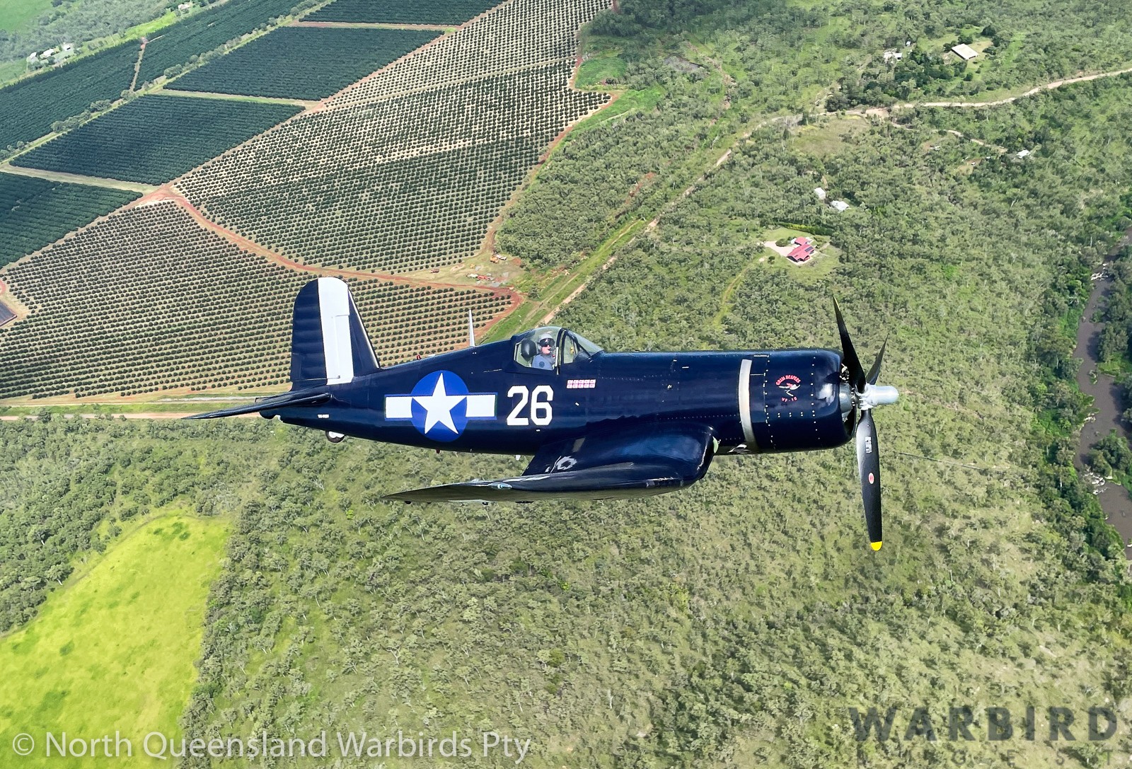 This Corsair is now the world’s only Vought-built -1D variant flying anywhere in the world, with only one other complete survivor in preservation (the Smithsonian’s BuNo.50375). The aircraft is also one of only a handful of WWII combat veteran Corsairs extant, having served with VF-10 Grim Reapers aboard the carrier USS Intrepid between January and April, 1945. Mike Spaulding and his team at North Queensland Warbirds Pty deserve hearty congratulations for getting this aircraft flying again. Their achievement in successfully completing this restoration cannot be overstated given the immense demands of their endeavor. Amongst other difficulties, the project required the complete rebuild of the Corsair’s main spar, by far the most complex of any WWII fighter aircraft… indeed the demands of such an enterprise rendered it economically unviable until this past decade. So bravo to Mike Spaulding for taking on the daunting and demanding investment of time, skill and treasure which this restoration represents!