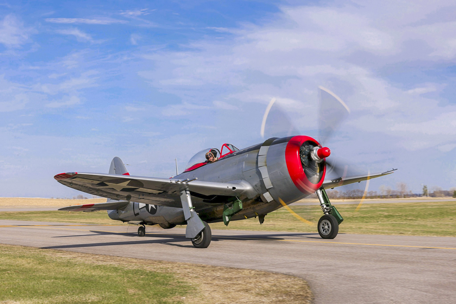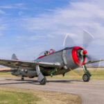 Bernie Vasquez taxiing P-47D 44-32817 following the Thunderbolt’s arrival at Granite Falls after flying in from San Antonio Texas. The former Velezuelan Air Force fighter is joining the Fagen Fighters’ burgeoning collection of significant WWII-era aircraft. (photo via Fagen Fighters WWII Museum)