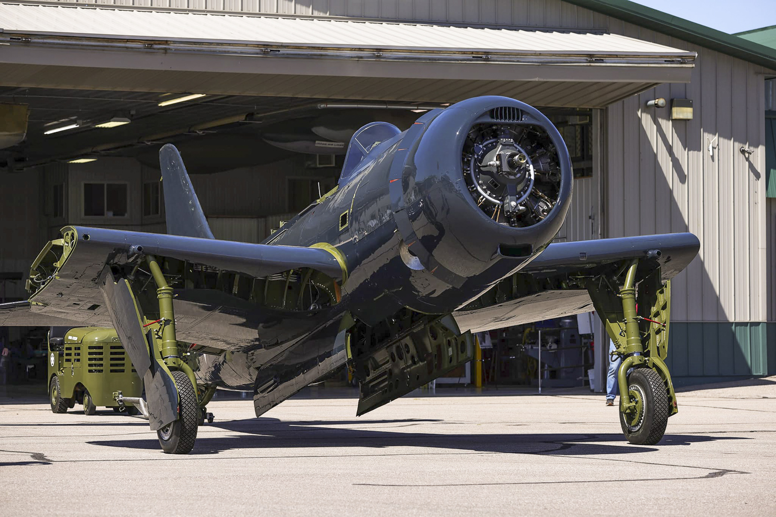 The Helldiver emerging from the Fagen Fighters workshop in Granite Falls, Minnesota. (photo via Fagen Fighters WWII Museum)